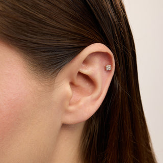 Square Baget Taşlı Dikdörtgen Formlu Kulak Piercing | 14 Ayar Altın