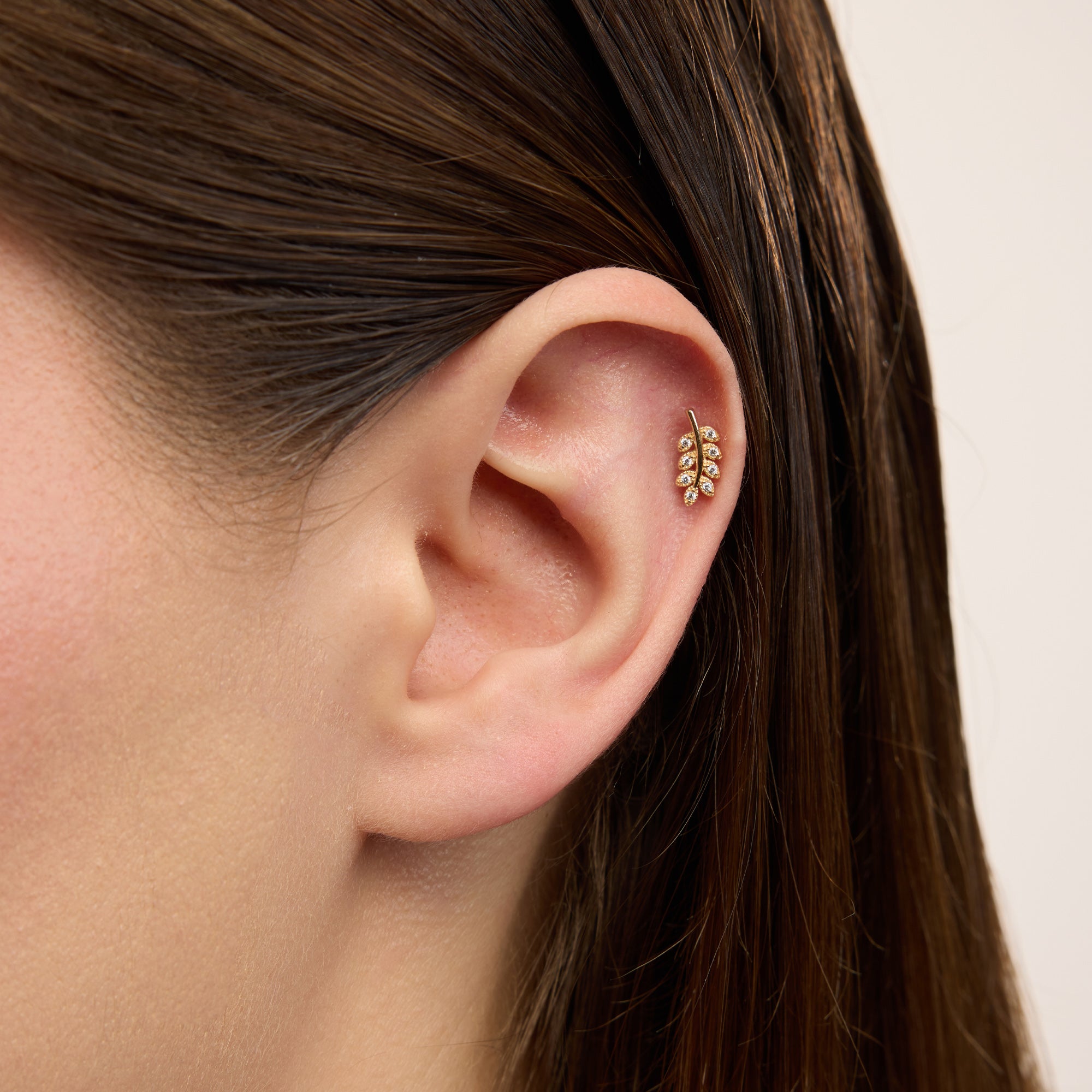 AJA Jessica Buğday Filizi Figürlü Çok Taşlı Kulak Piercingi – 14 Ayar Altın