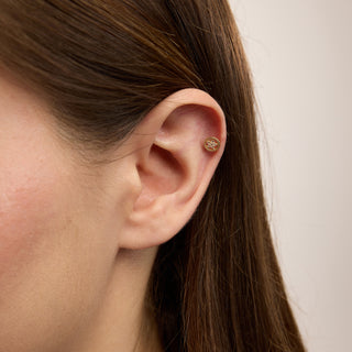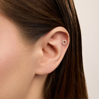 Bliss Yuvarlak Taşlı Baget Taşlı Kulak Piercing | 14 Ayar Altın