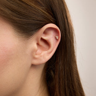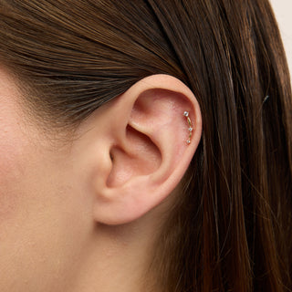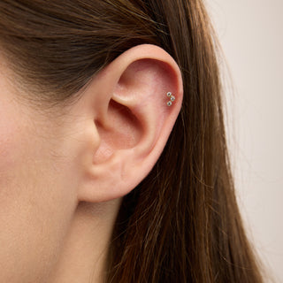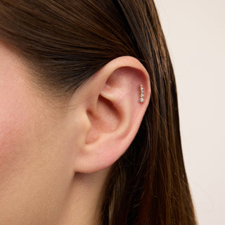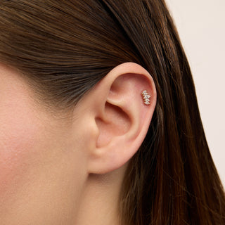 Triple Minimal Üç Taşlı Kulak Piercing | 14 Ayar Altın