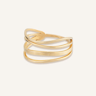 AJA Blue Sky Yıldız ve Ay Desenli Mineli Taşlı Kelepçe Bileklik | 14 Ayar Altın