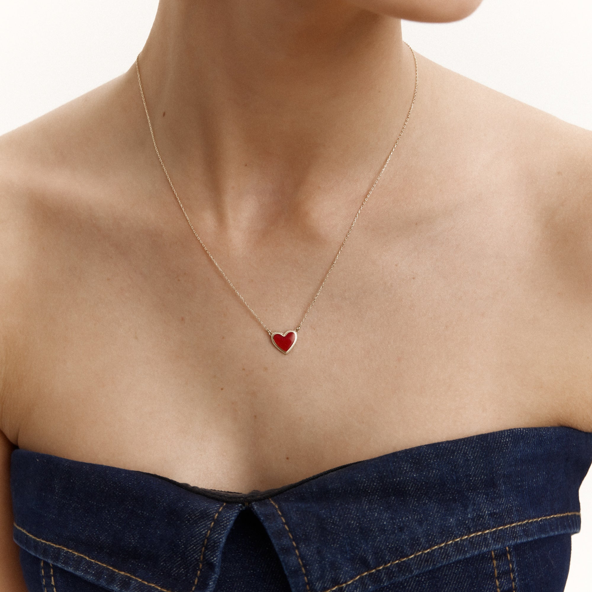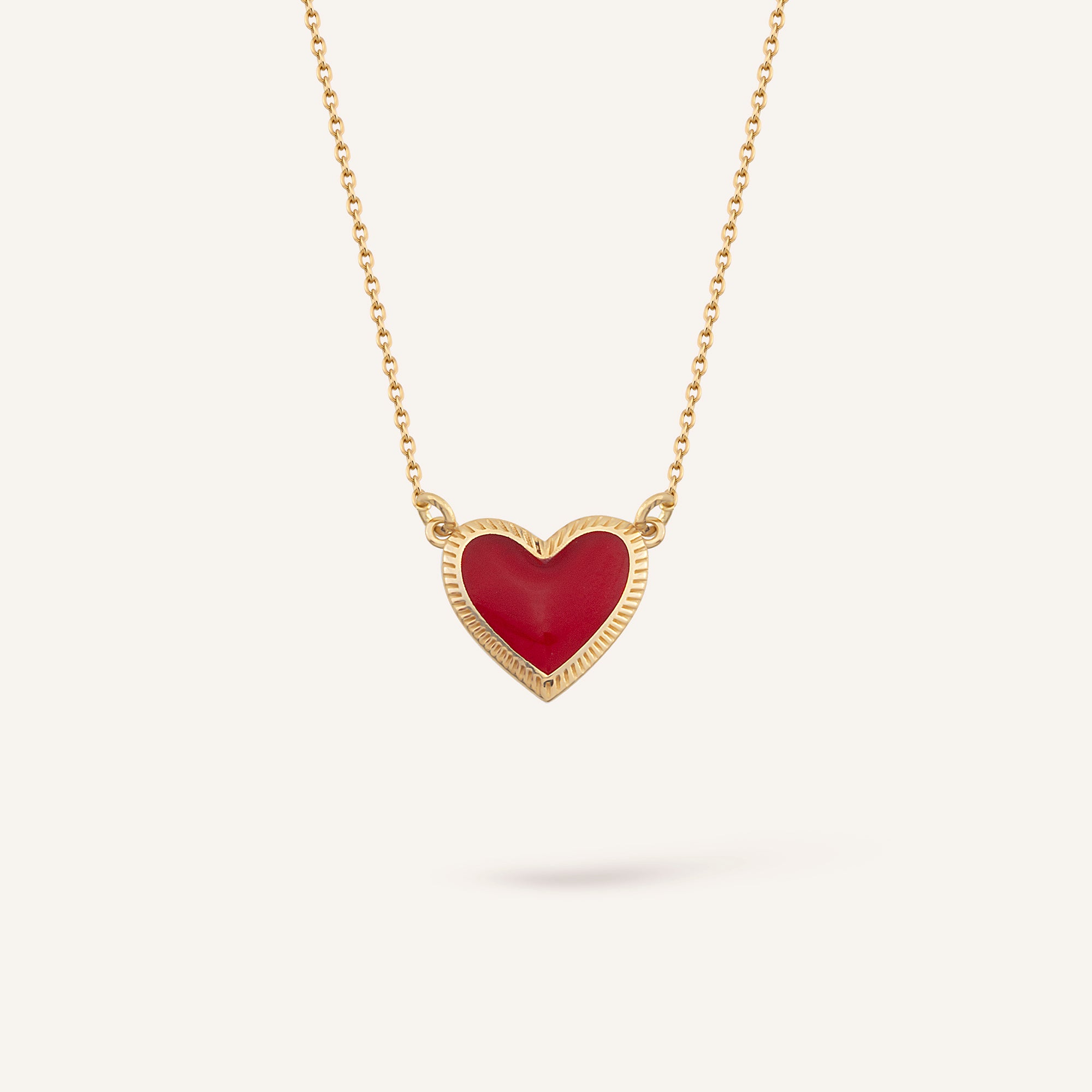 Red Brave Kırmızı Mineli Kalp Figürlü Altın Kolye