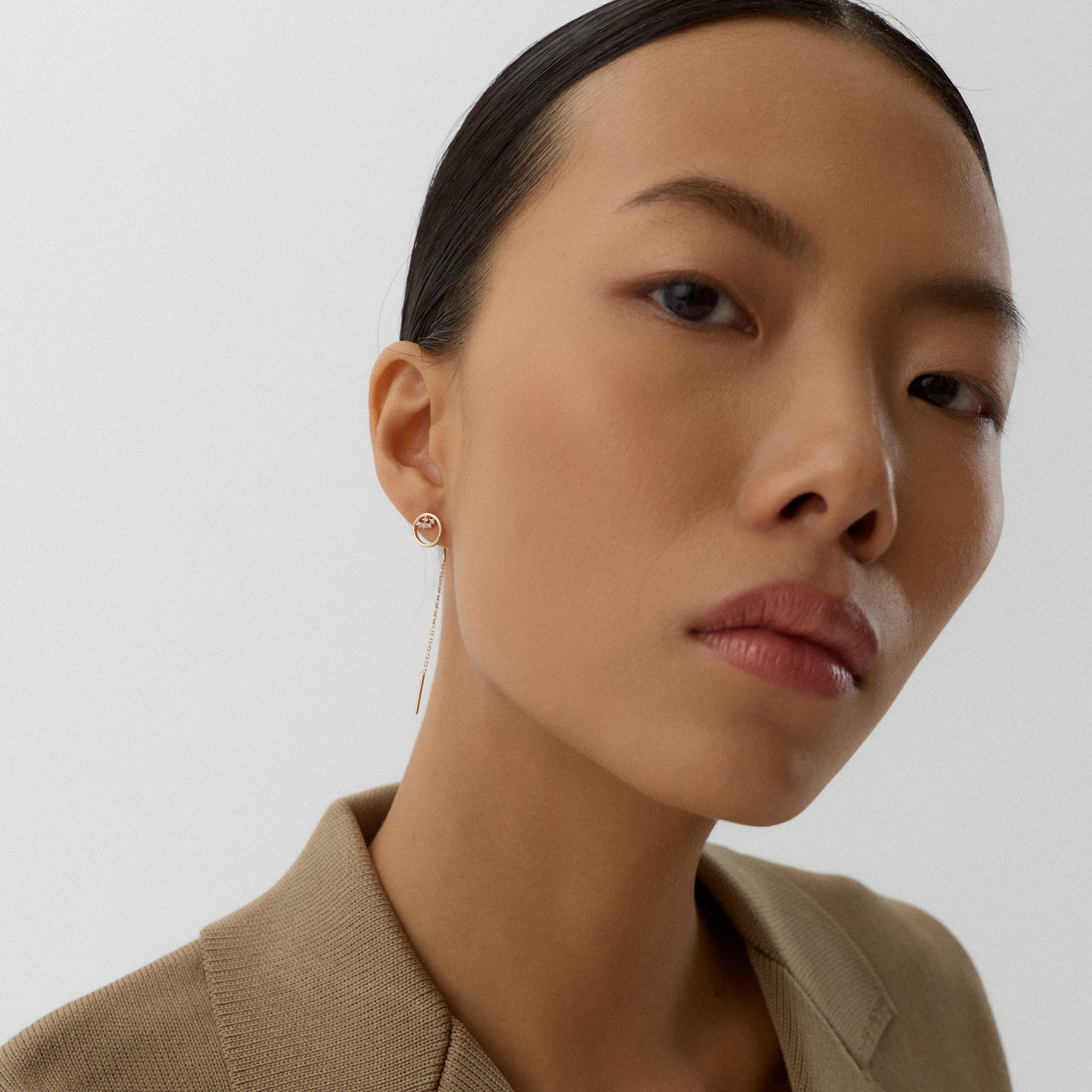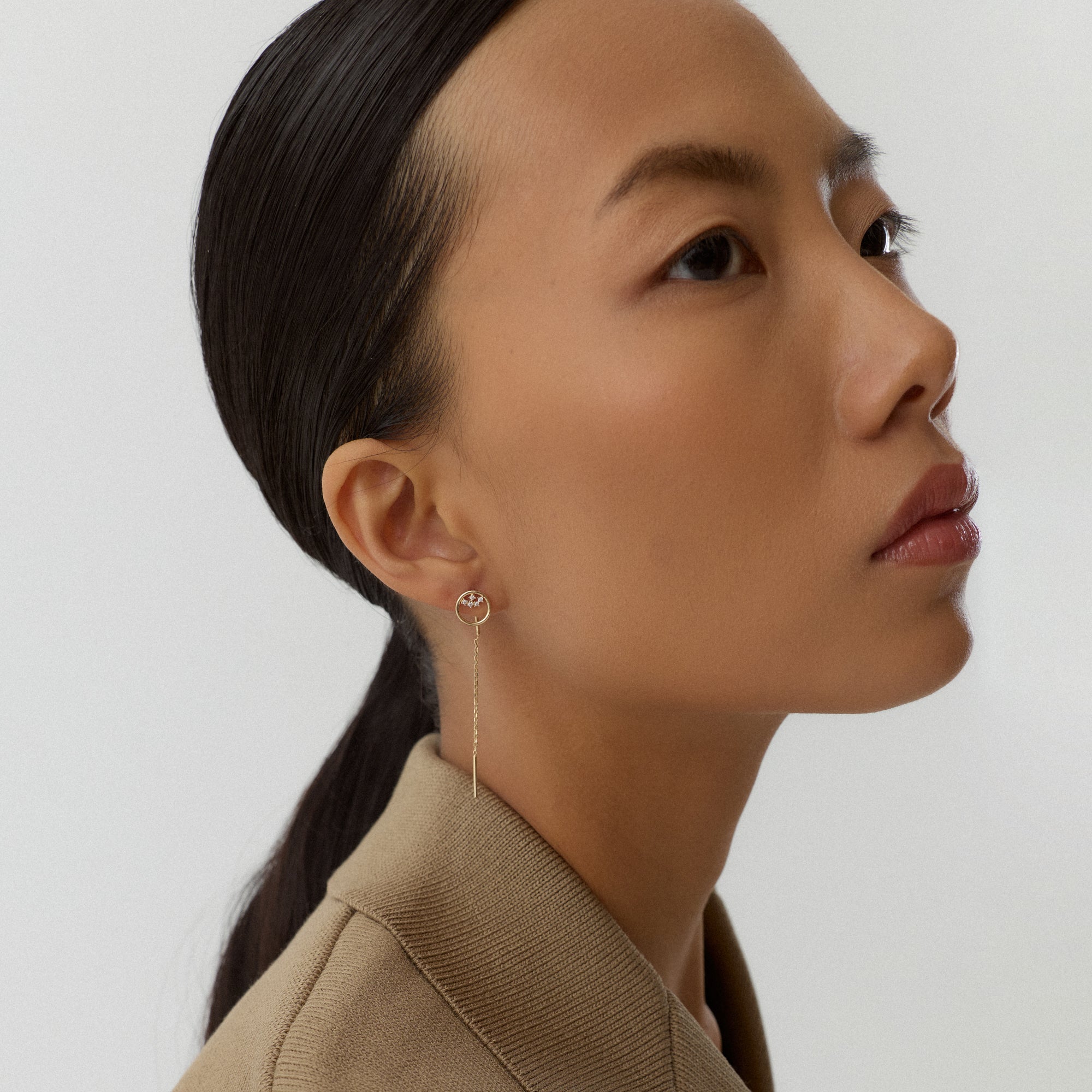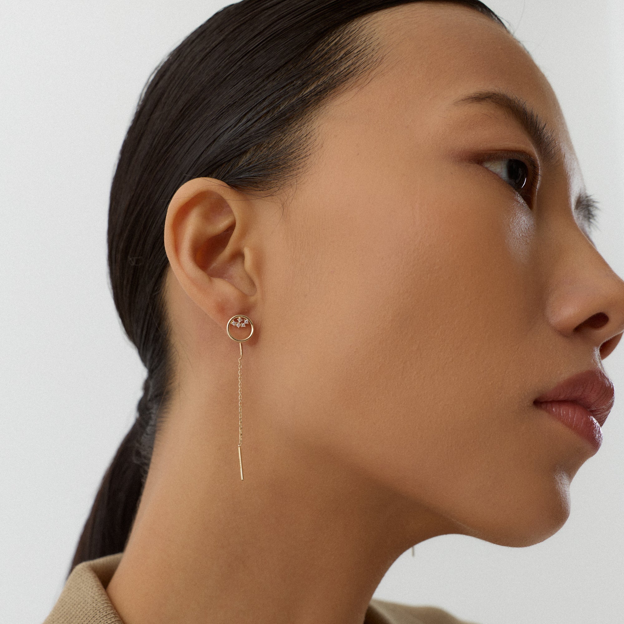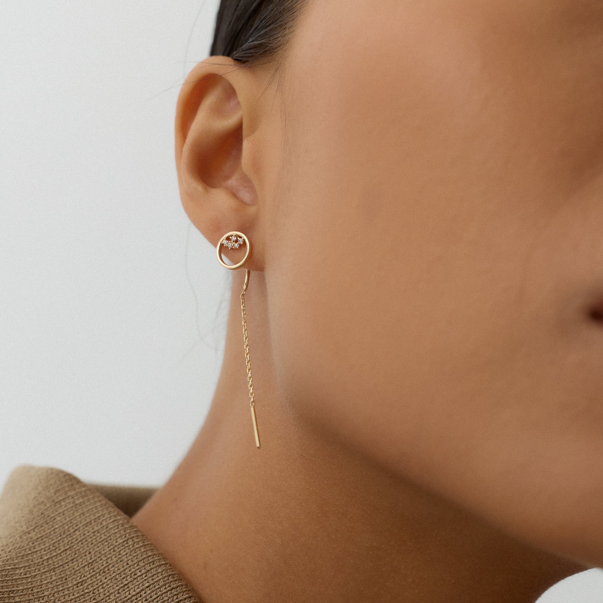 Olyra Halka Figürlü Çok Taşlı Zincir Sallantılı Altın Küpe
