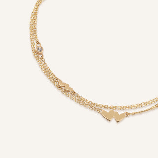 Double Heart Birleşik Kalp Figürlü Taşlı Çift Zincir Altın Bileklik
