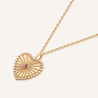 Musical Heart Kalp Figürlü Yakut Renk Kalp Kesim Taşlı Altın Kolye