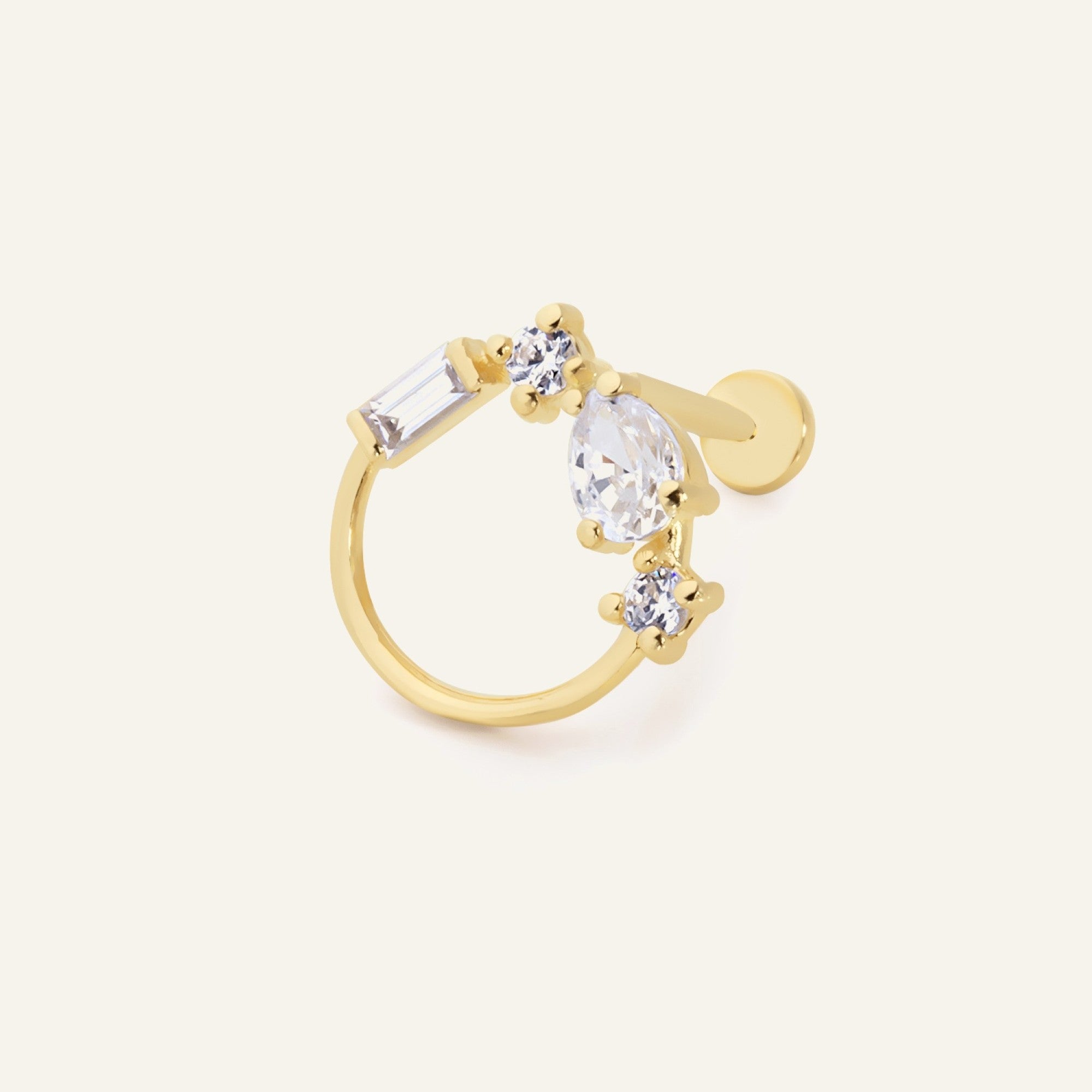 AJA Dazzle Asimetrik Taşlı Çok Taşlı Kulak Piercingi – 14 Ayar Altın