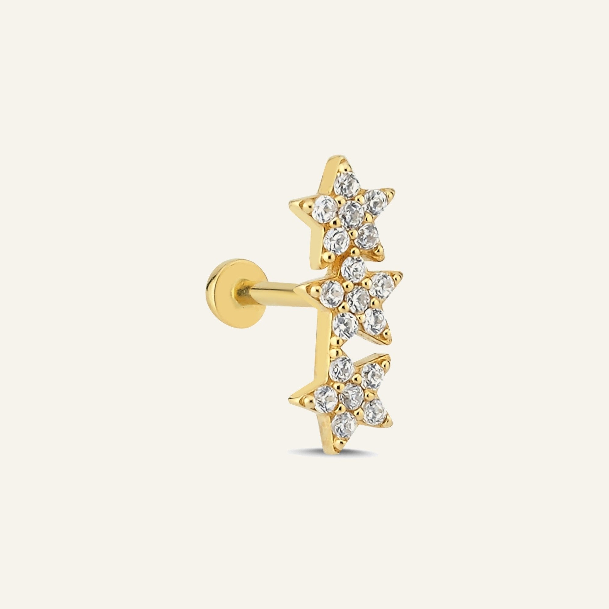 AJA Octavia Yıldız Figürlü Çok Taşlı Kulak Piercingi – 14 Ayar Altın
