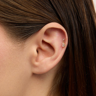 Leonora Damla Figürlü 2 Taşlı Kulak Piercing | 14 Ayar Altın