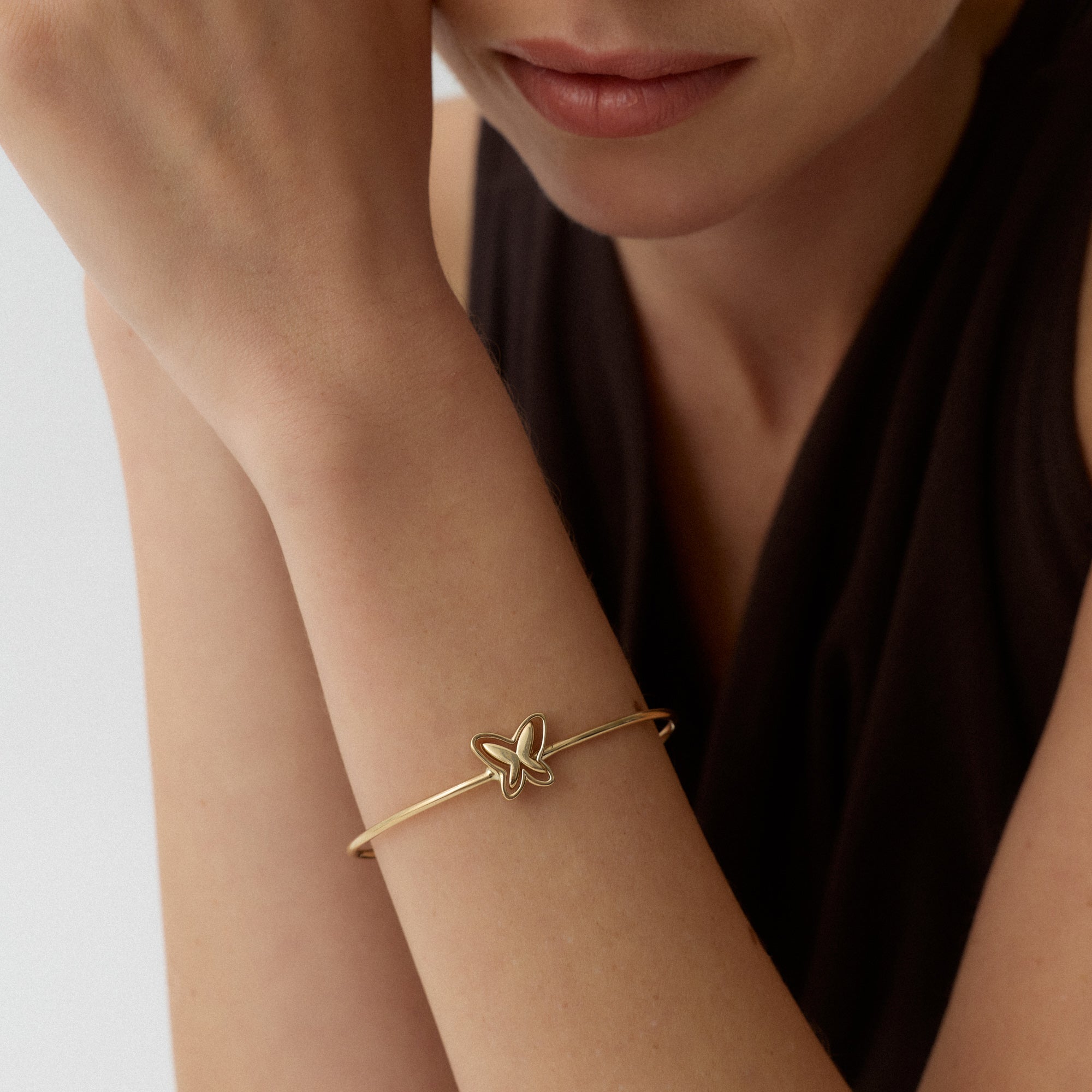 AJA Papillon Kelebek Figürlü Taşsız Kelepçe Bileklik | 14 Ayar Altın