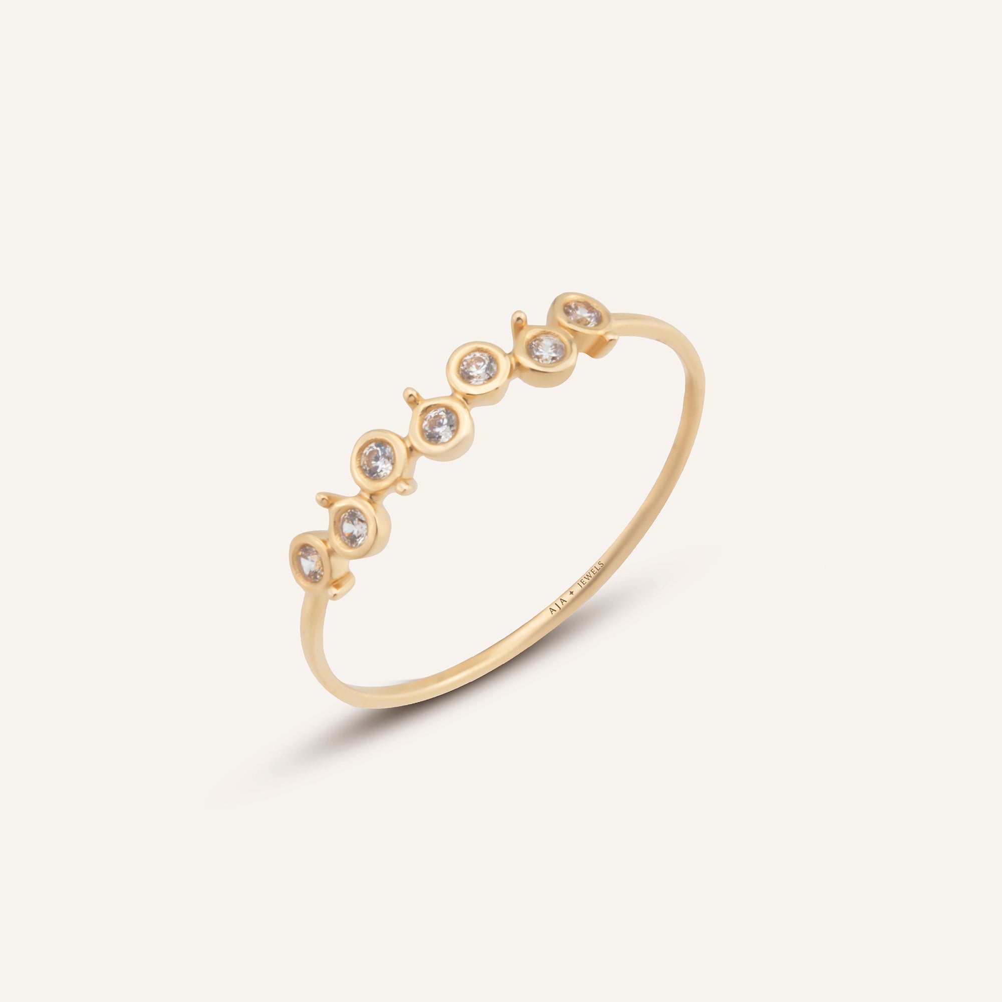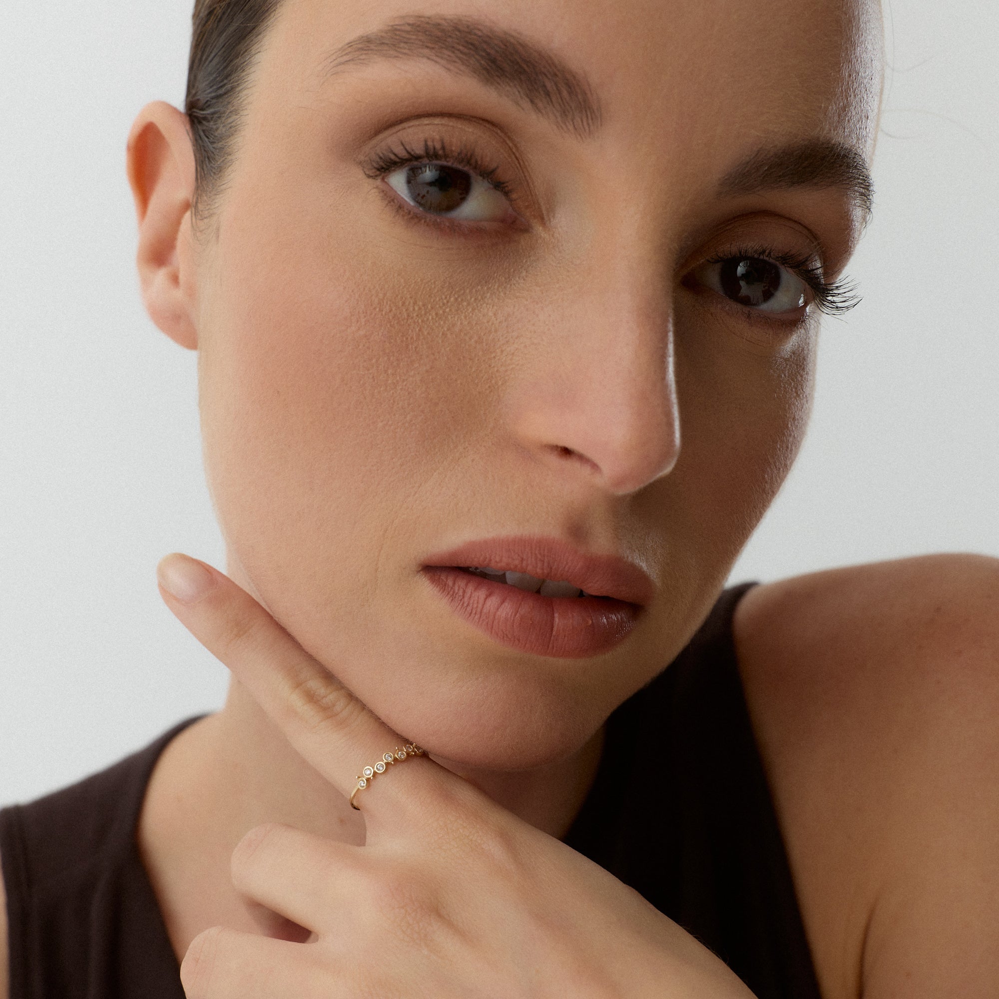 Alyndra Yüzük, ince detaylarıyla zarafetin ruhunu taşır. Altının sıcak yüzeyi, yumuşak bir parlaklıkla ışığı yakalar. Her hareketle değişen yansımalar, parmakta canlı bir enerji yaratır. Alyndra Yüzük, kadınsı bir zarafetin sade ama güçlü bir sembolüdür.