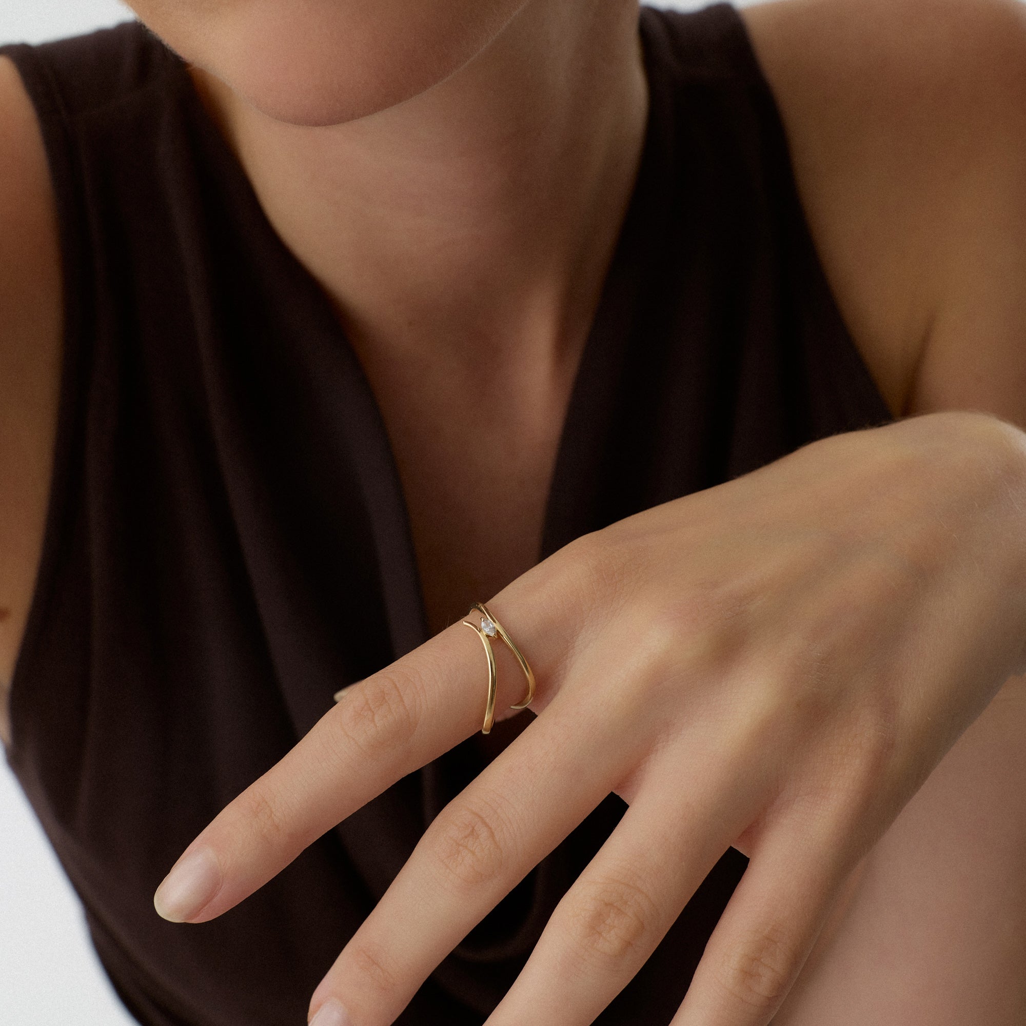 Amelira Yüzük, ışığın parıltısını zarif bir dengeyle taşır. İnce hatları, modern çizgilerle birleşirken altının sıcak tonu parmakta huzurlu bir ışıltı oluşturur. Her açıdan farklı bir parlama yakalayan tasarımıyla, günlük zarafetten özel anlara geçişin sembolüdür. Amelira Yüzük, sadeliğin gücünü ve feminenliğin asaletiyle birleşen zamansız bir şıklığı temsil eder.