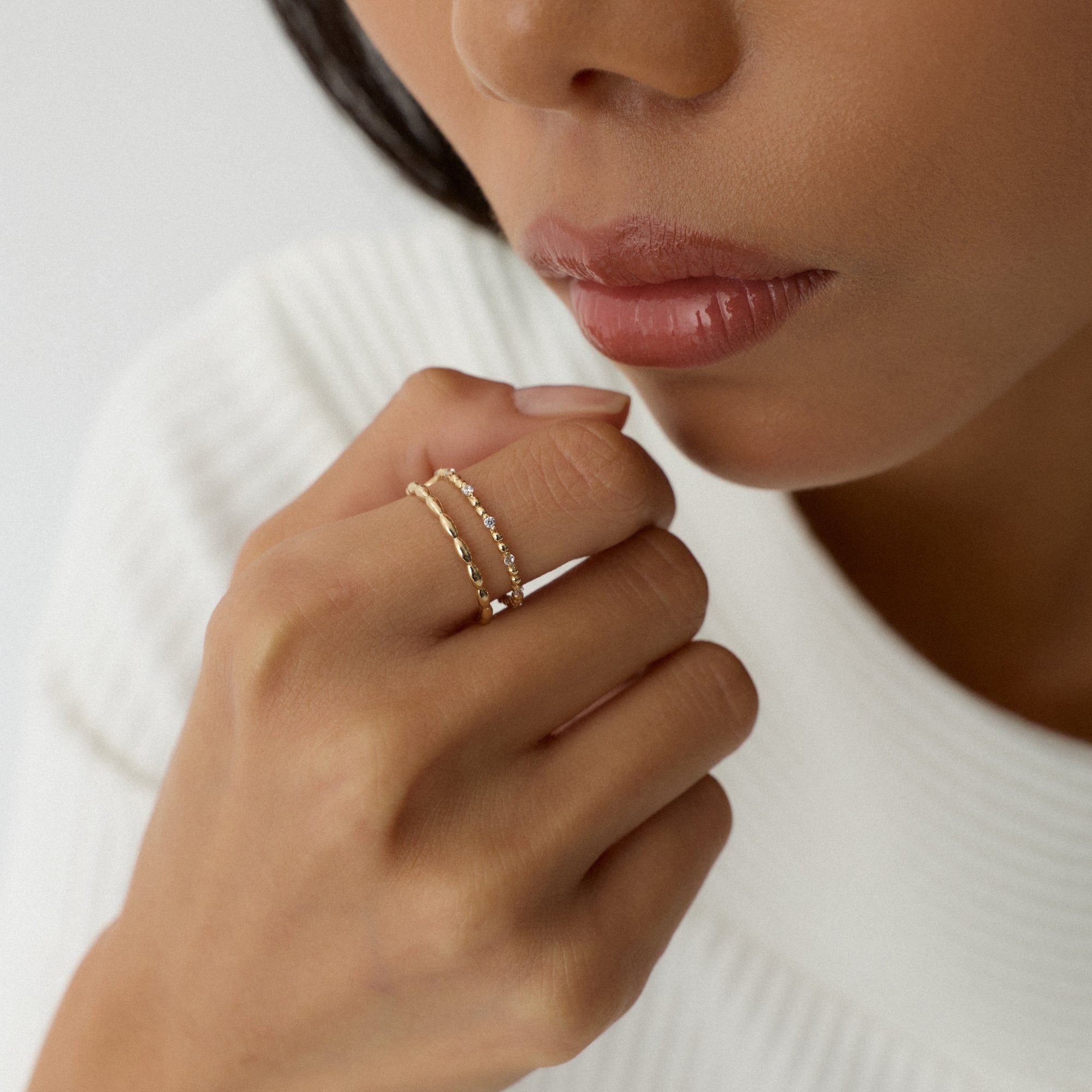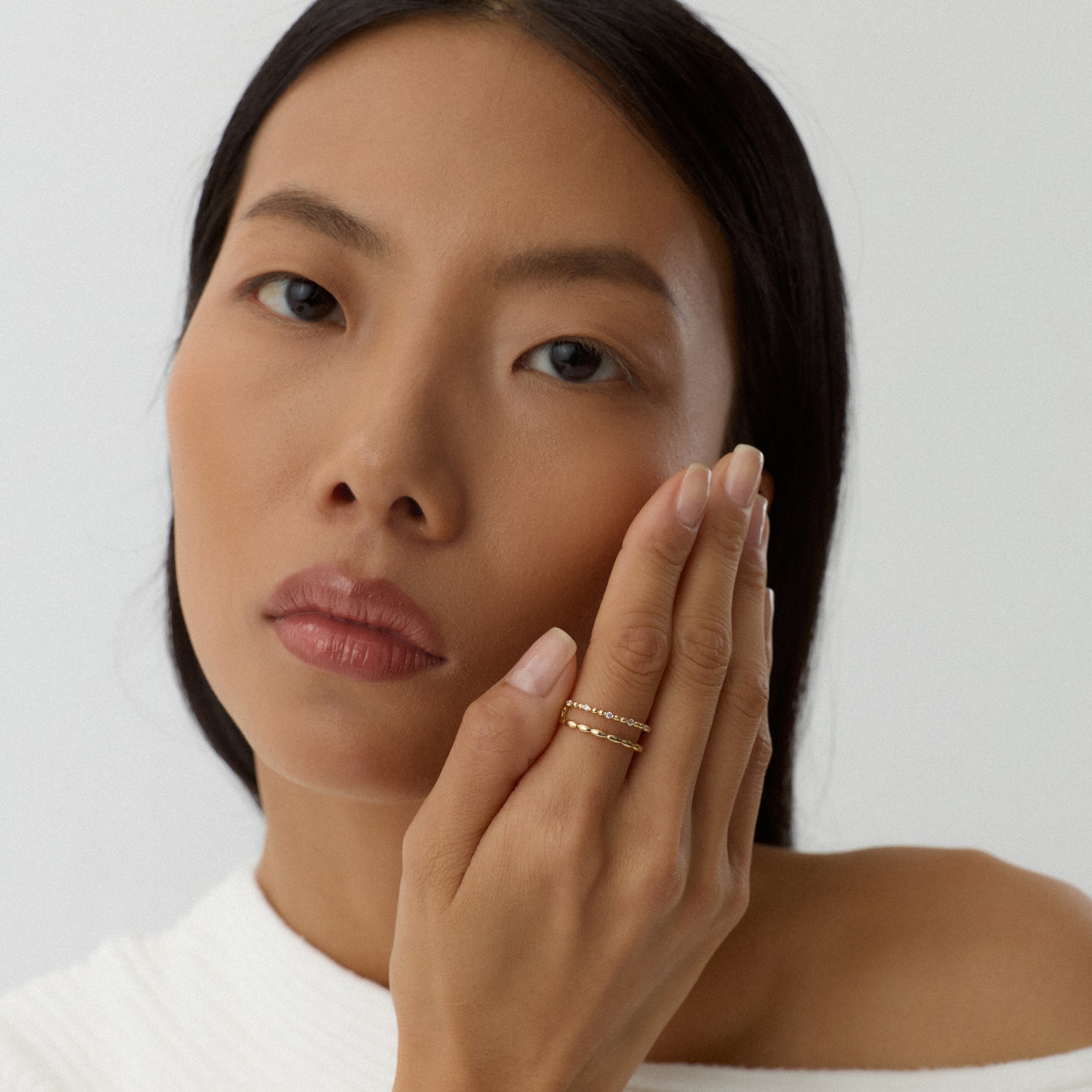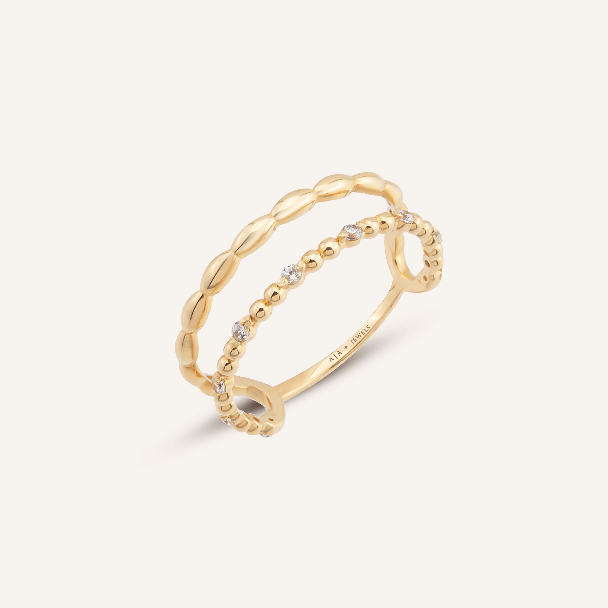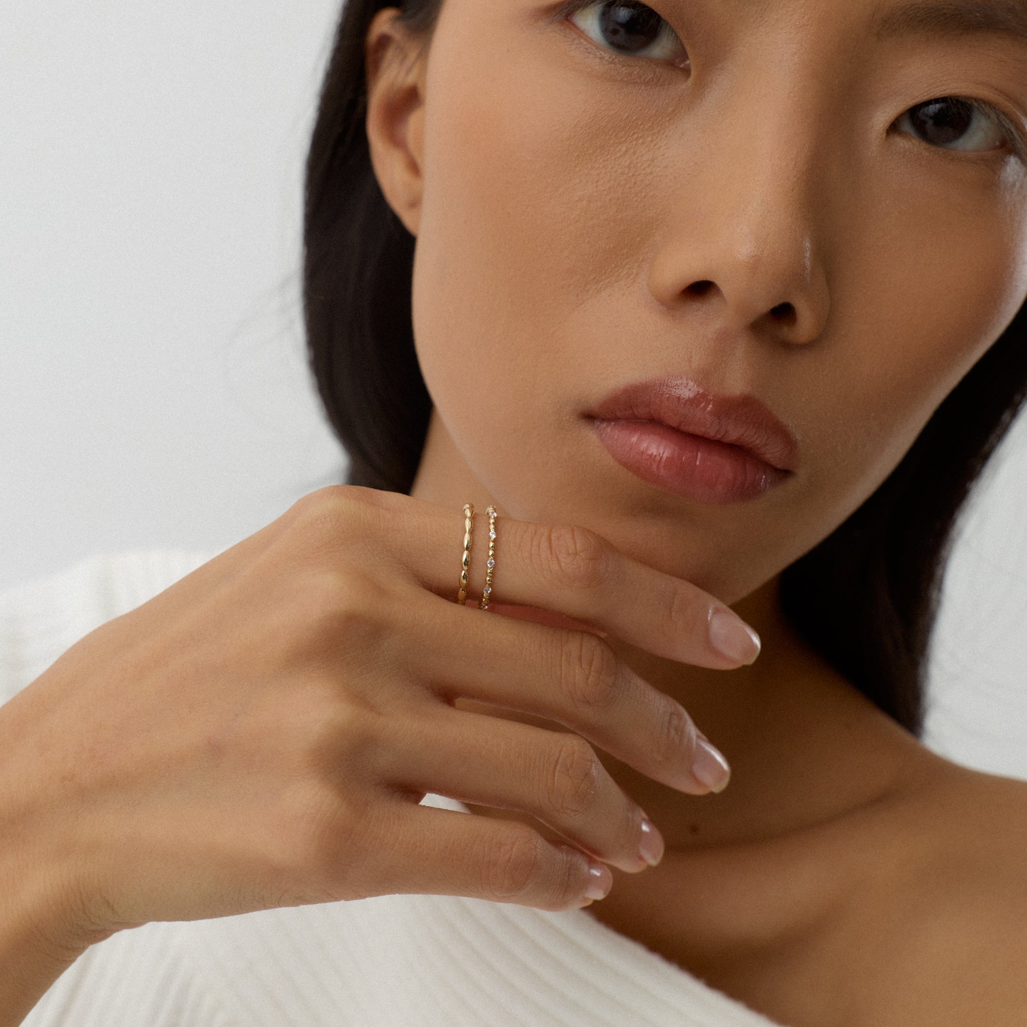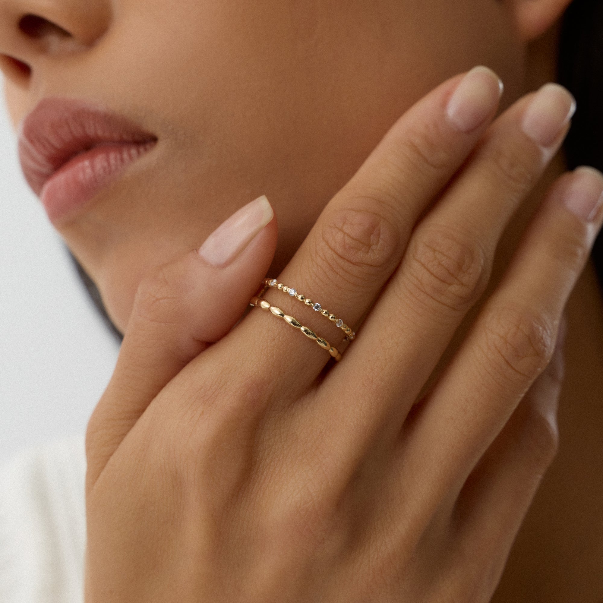 Aurielle Yüzük, altının yumuşak parlaklığını zarif bir formda taşır. Dairesel çizgileri, ışığın bilek üzerinde akışını anımsatır. Feminen detaylar, modern sadelikle birleşerek sade ama etkileyici bir ışıltı yaratır. Günlük kullanımda zarif bir tamamlayıcı, özel anlarda ise göz alıcı bir dokunuş olur. Aurielle, zamansız bir zarafetin modern ifadesidir; abartısız güzelliğiyle her dönemde aynı etkiyi yaratır.