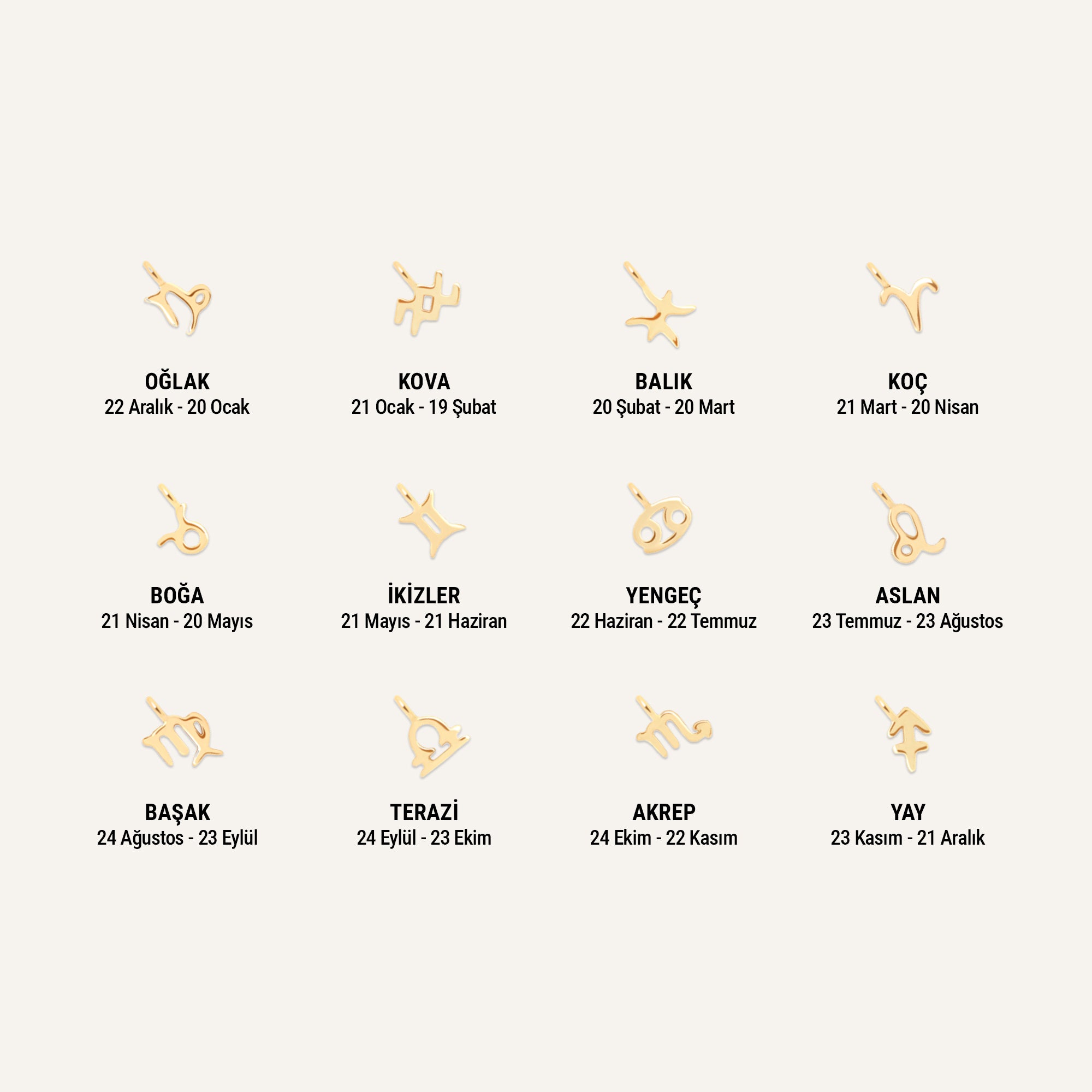 Aja Özel Tasarımı 14 Ayar Altın Burç Charm