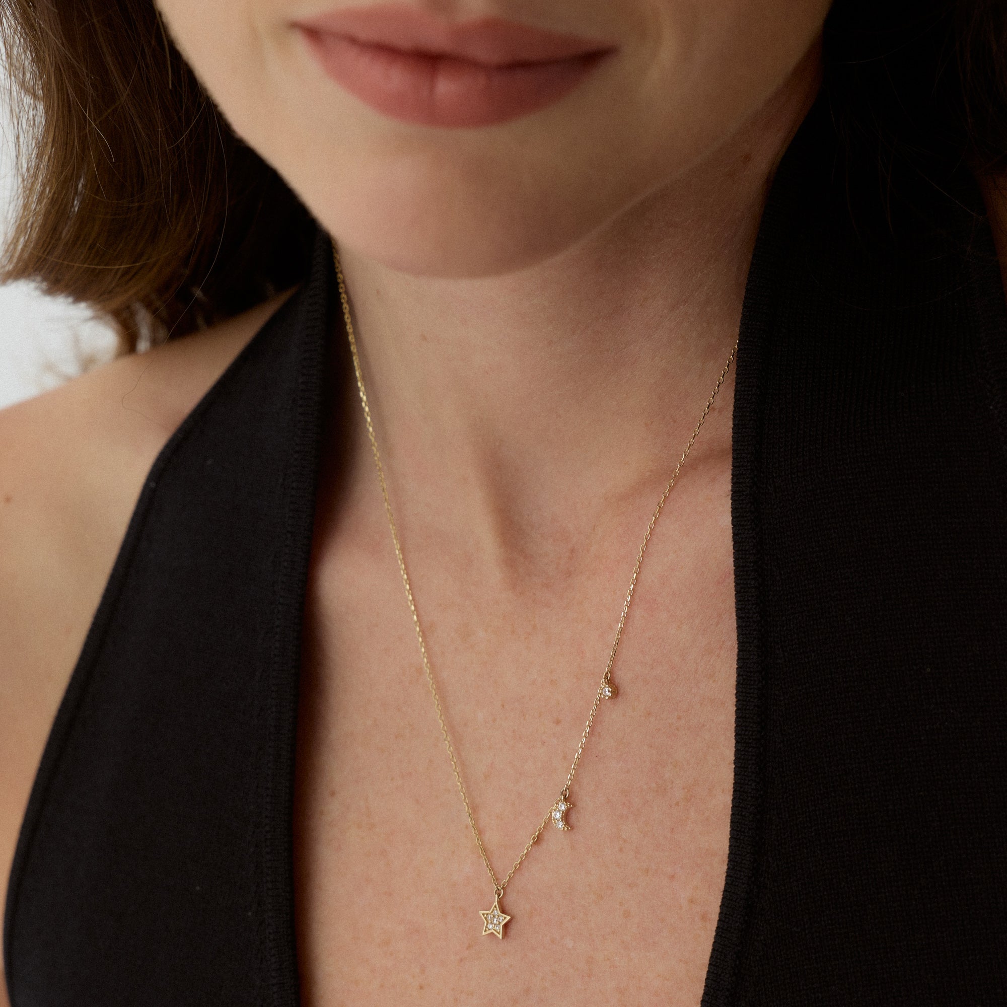 Telvane Kolye, zarafetin çizgisel bir yorumu. Altın detayları, ışığın akışını yumuşak bir geçişle yansıtır. Feminen ama sade bir estetikle tasarlanmıştır. Her kullanımda farklı bir ışıltı doğar. Calenne Kolye, minimal şıklığın zamansız bir simgesidir.