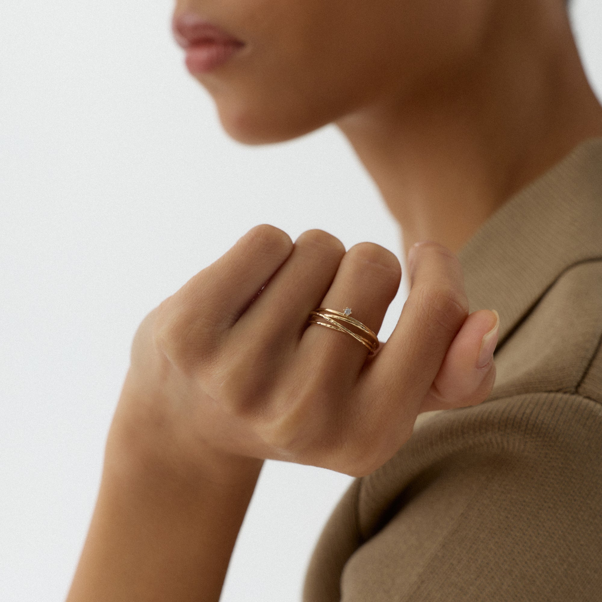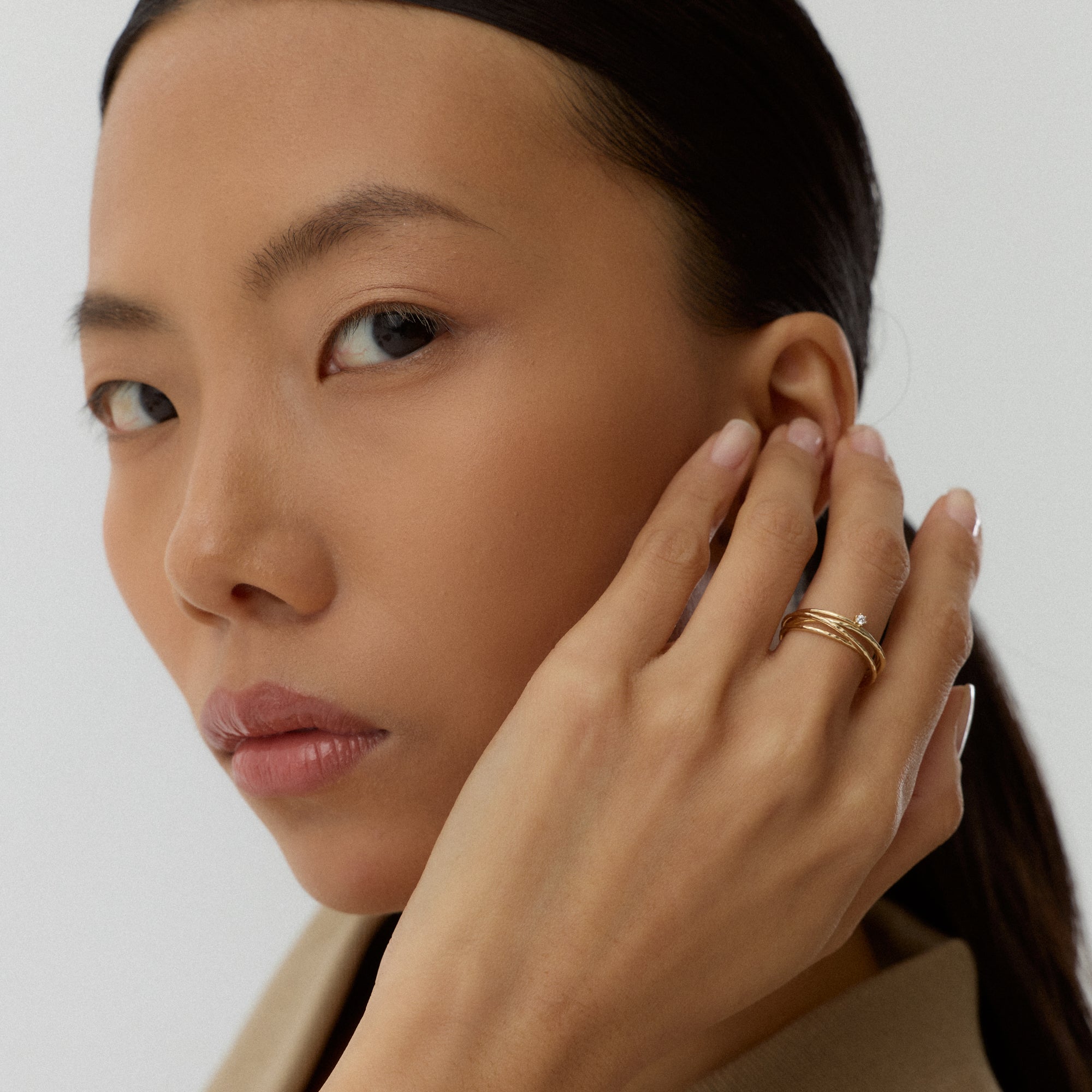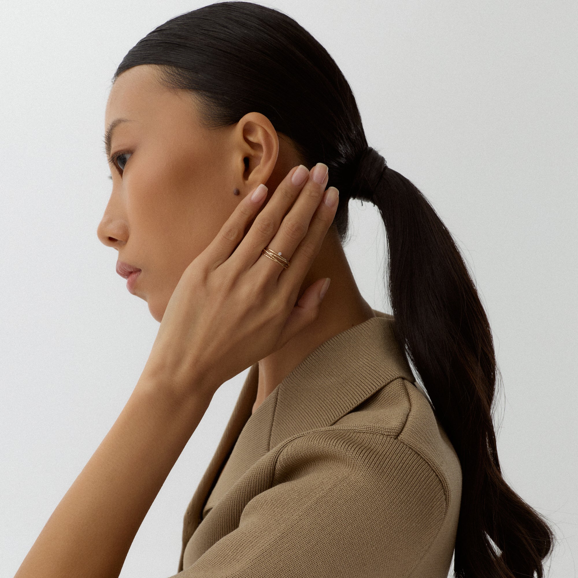 Celvine Yüzük, modern çizgileriyle zarafetin sınırlarını yeniden tanımlar. Altının pürüzsüz yüzeyi, ışığı yumuşak bir parlaklığa dönüştürür. Her detayıyla sade ama güçlü bir duruş sergiler. Celvine, günlük kullanım için zarif, özel anlar içinse dikkat çekici bir parça olarak tasarlanmıştır. Feminen zarafeti ölçülü bir estetikle harmanlar; modern kadının ruhunu yansıtır.