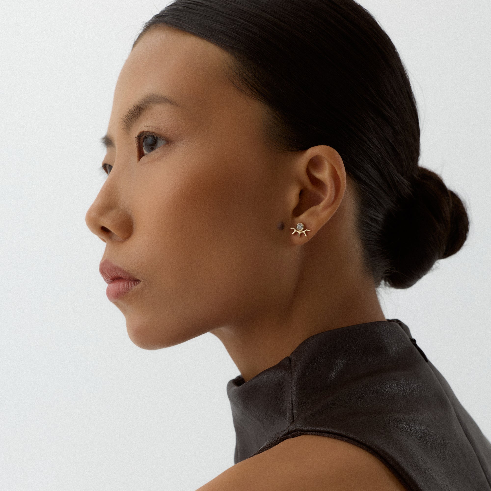 AJA’nın sıradışı formları rafine bir zarafetle birleştiren tasarım yaklaşımını taşıyan Clovia; asimetriyi estetik bir bütünlükle yorumlar. Günlük kullanımda dikkat çekmeden fark yaratan, özel anlarda ise seçkin bir imza etkisi bırakan bir kombin sunar. Göz figürünün koruyucu enerjisiyle taşlı küpenin naif parıltısı birleşerek kullanıcıya hem anlamlı hem de modern bir aksesuar deneyimi yaşatır.