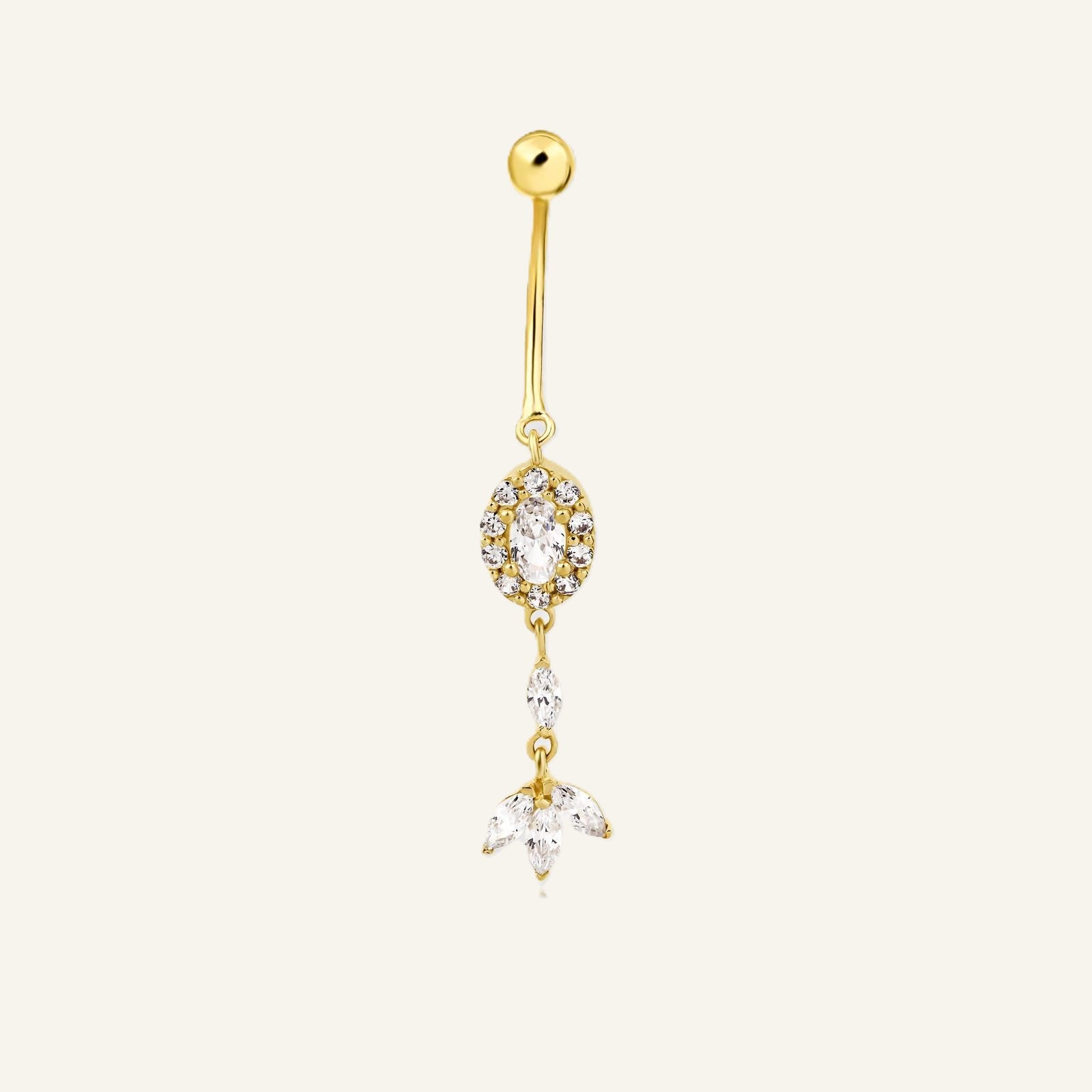 Crystal Petal Çiçek Motifli Oval Kesim Taşlı Sallantılı Altın Göbek Piercing