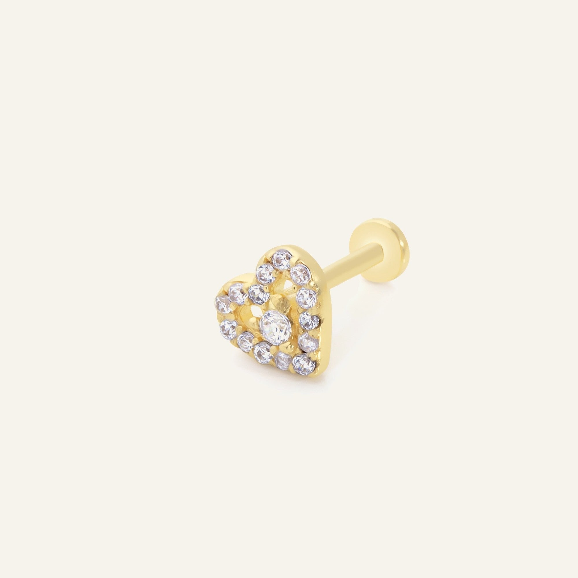AJA Devotion Kalp Figürlü Ortası Taşlı Çok Taşlı Kulak Piercingi – 14 Ayar Altın