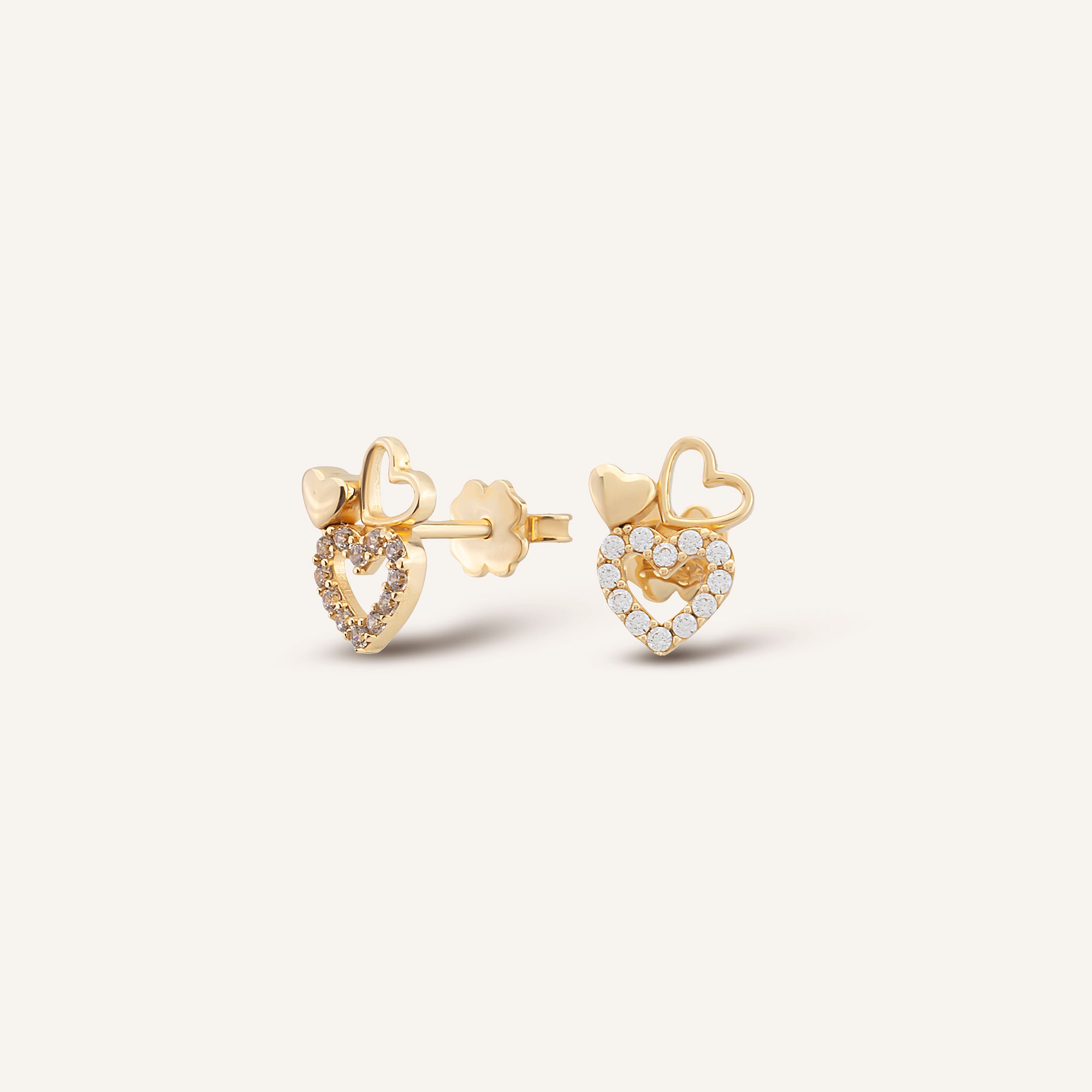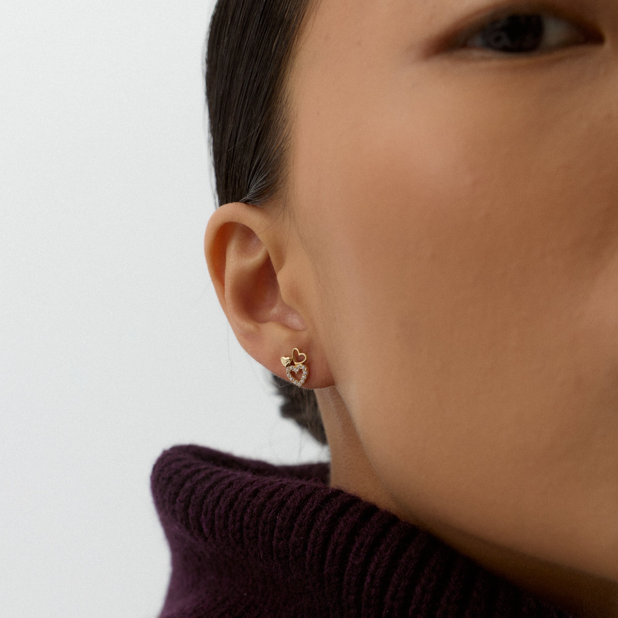 Evira küpeleri, ışığın sade ama etkileyici bir yansımasıdır. Altın formun üzerinde duran taşlar, her hareketle farklı bir ışıltı oluşturur. Küpeler, minimal çizgilerle zarafeti en saf haliyle taşır.