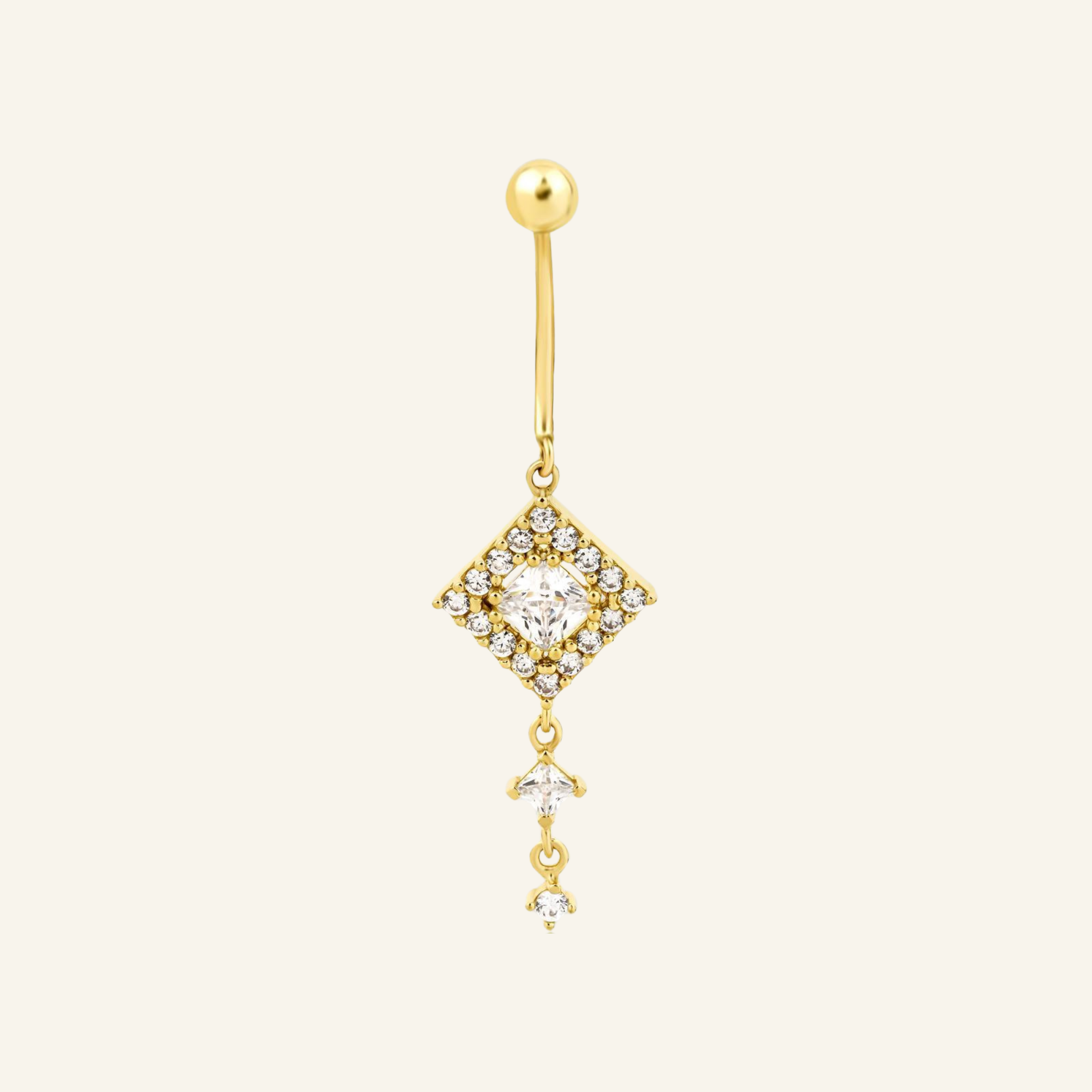 Geo Link Baklava Motifli Prenses Kesim Taşlı Sallantılı Altın Göbek Piercing