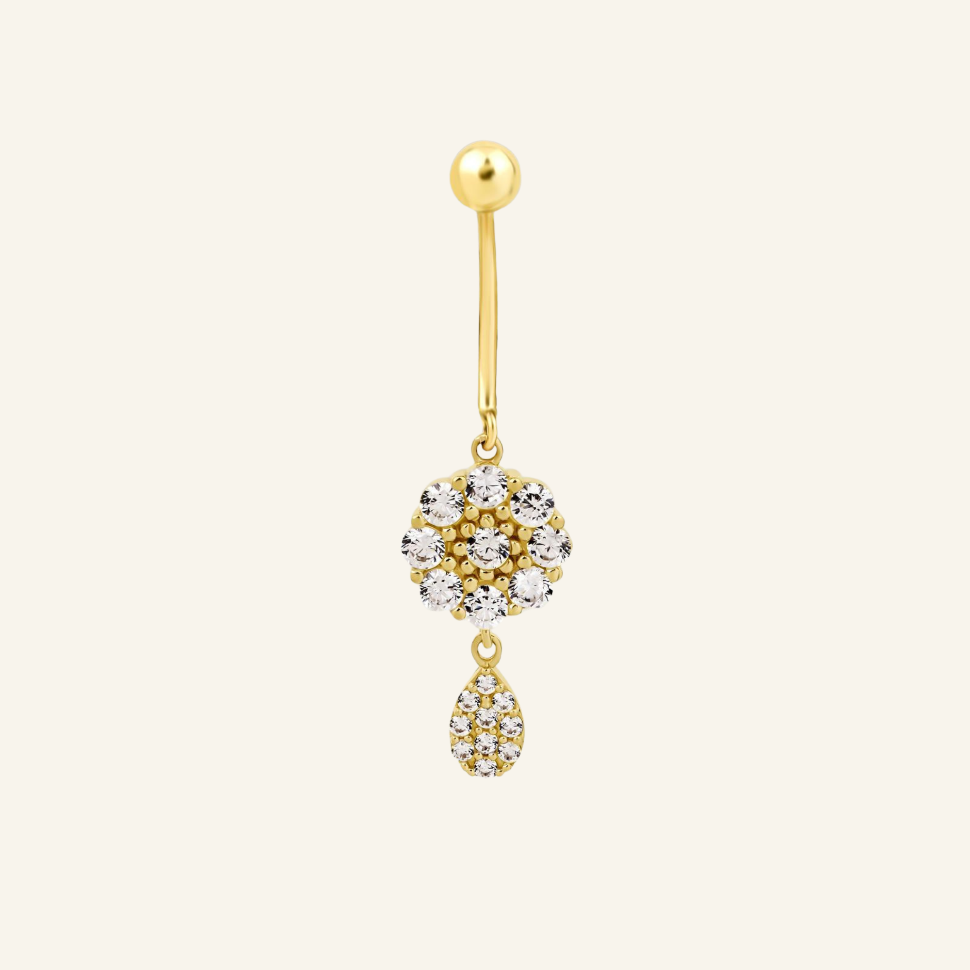 Glimmer Tear Damla Motifli Yuvarlak Kesim Taşlı Sallantılı Altın Göbek Piercing