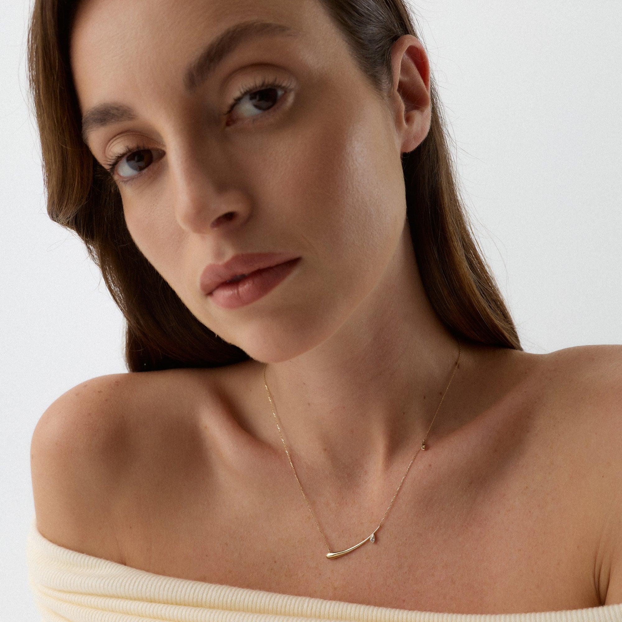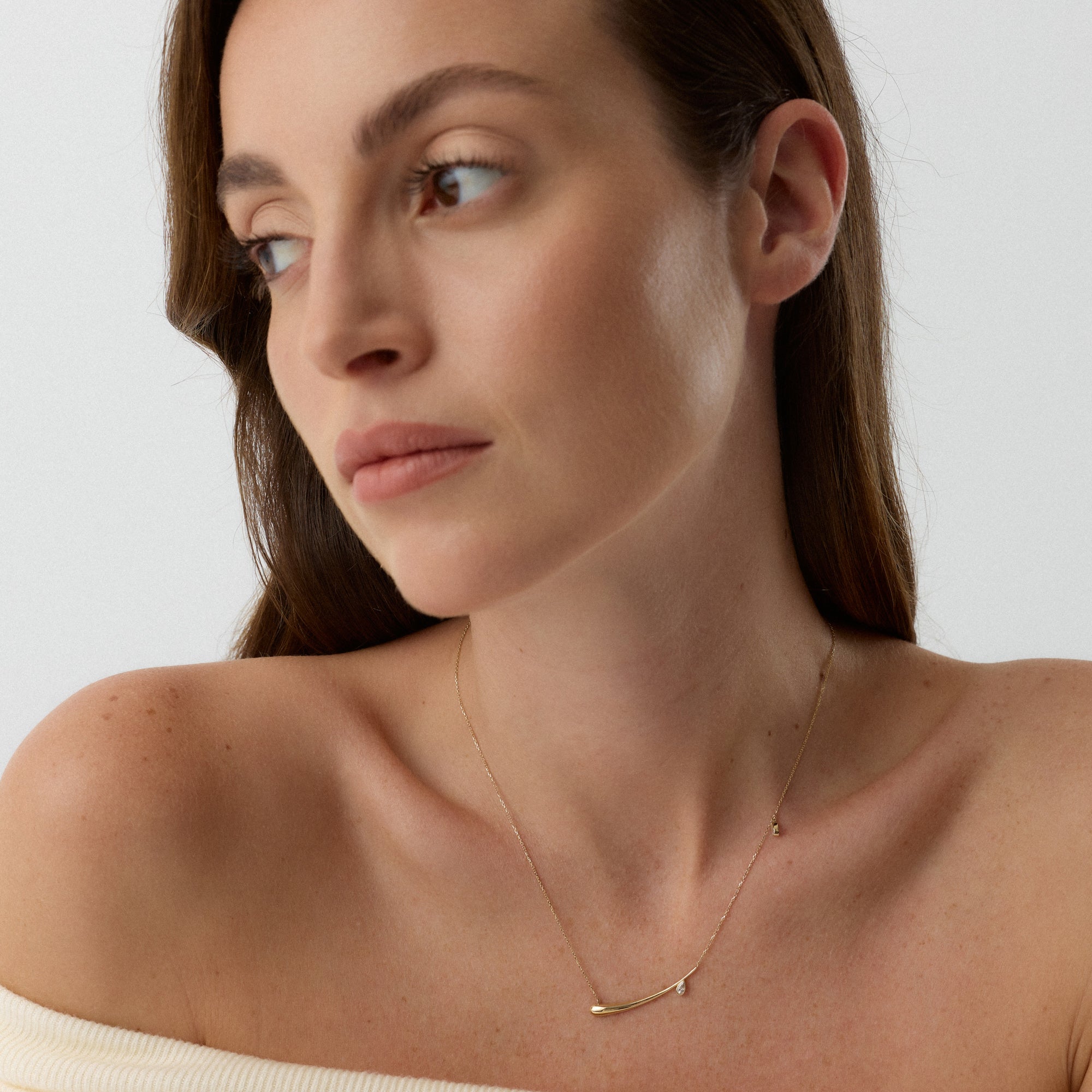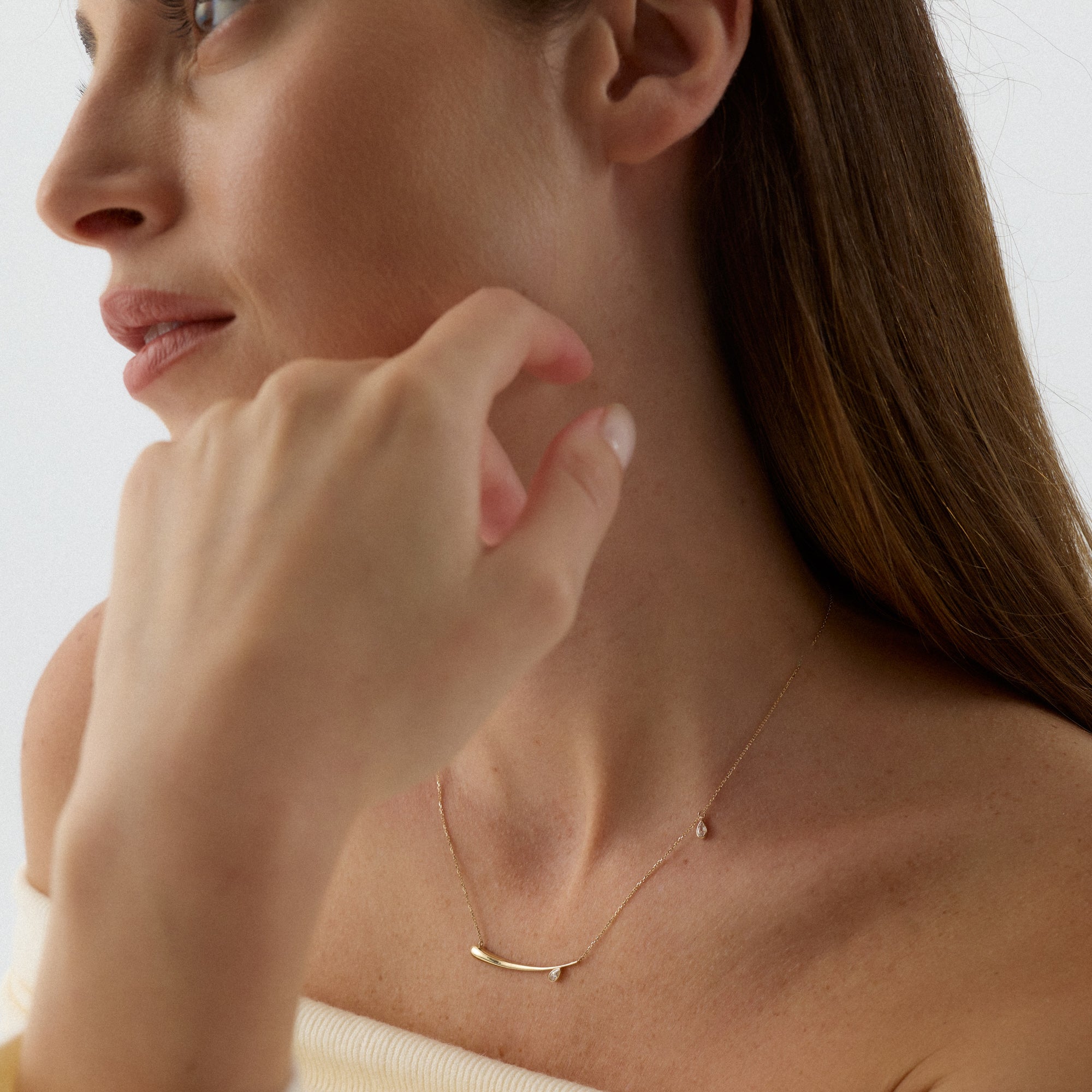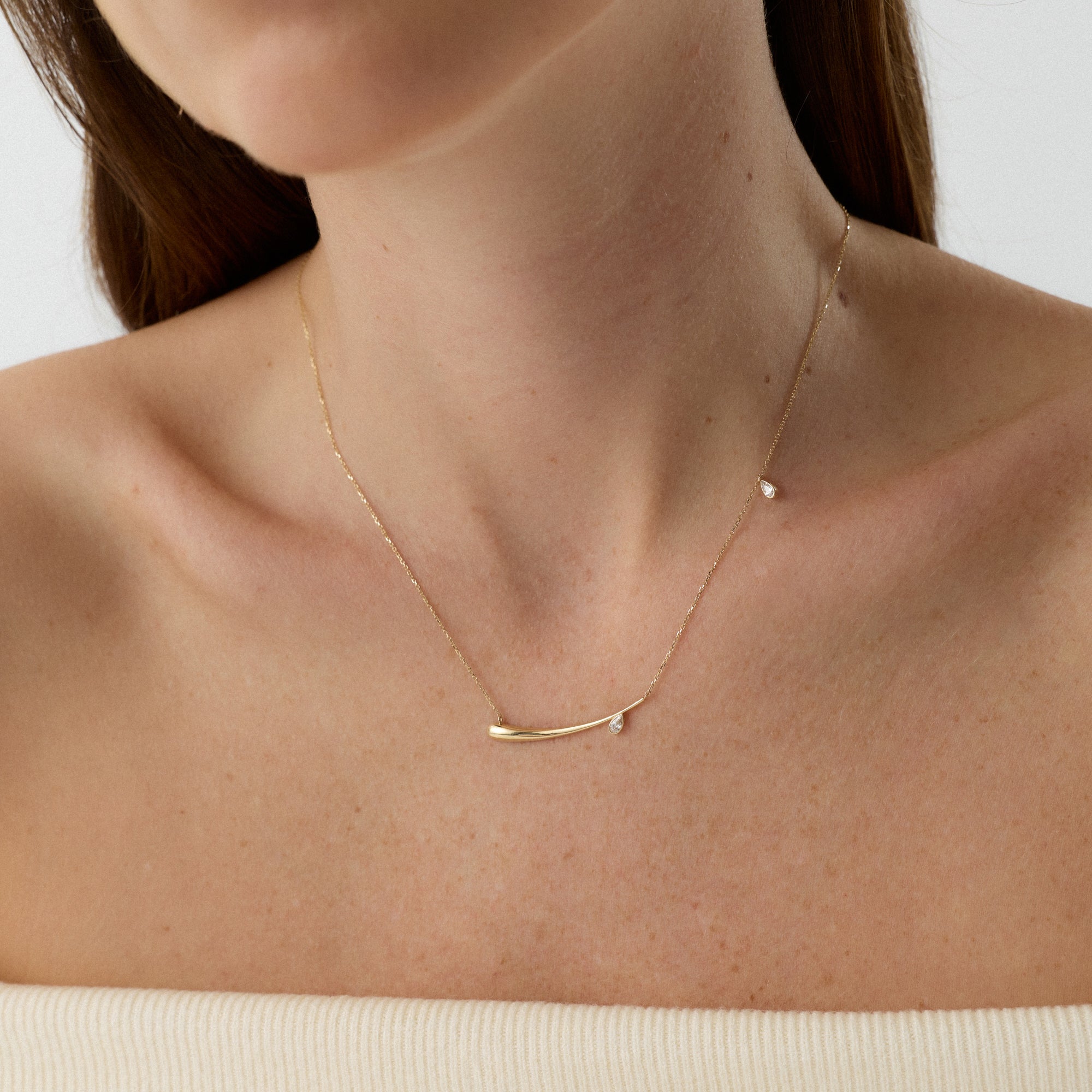 Lacora kolyesi, boyunda suyun huzurlu akışını taşıyan zarif bir tasarımdır. Zincir boyunca dizilen taşlar, ışığın yönünü değiştirerek farklı parıltılar oluşturur. Damla formu, feminen zarafetin özünü temsil eder. Altın detaylar, bu doğallığı sıcak bir dokuyla tamamlar. Lacora kolyesi, dinginliğin ışıltıya dönüştüğü bir hikâyedir.