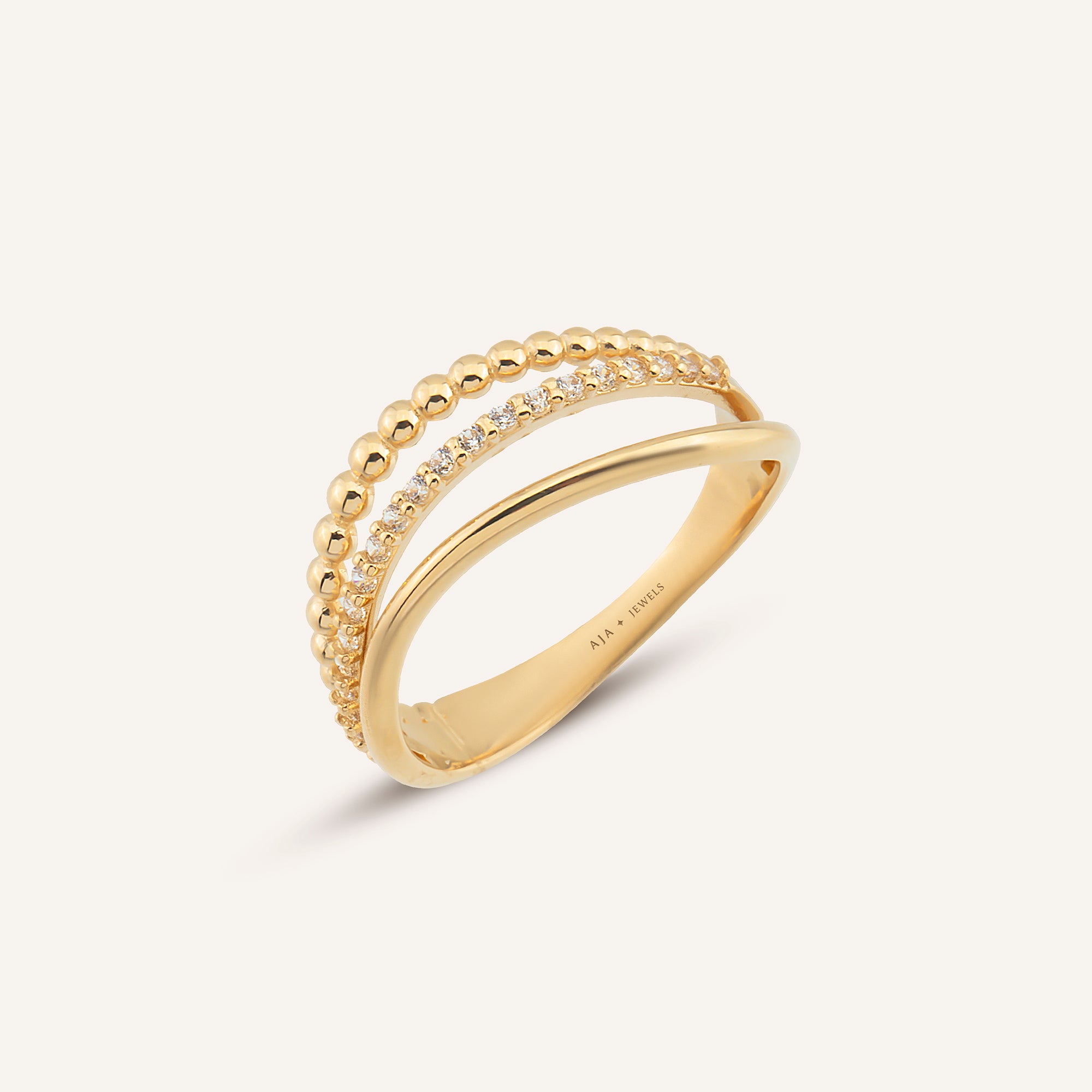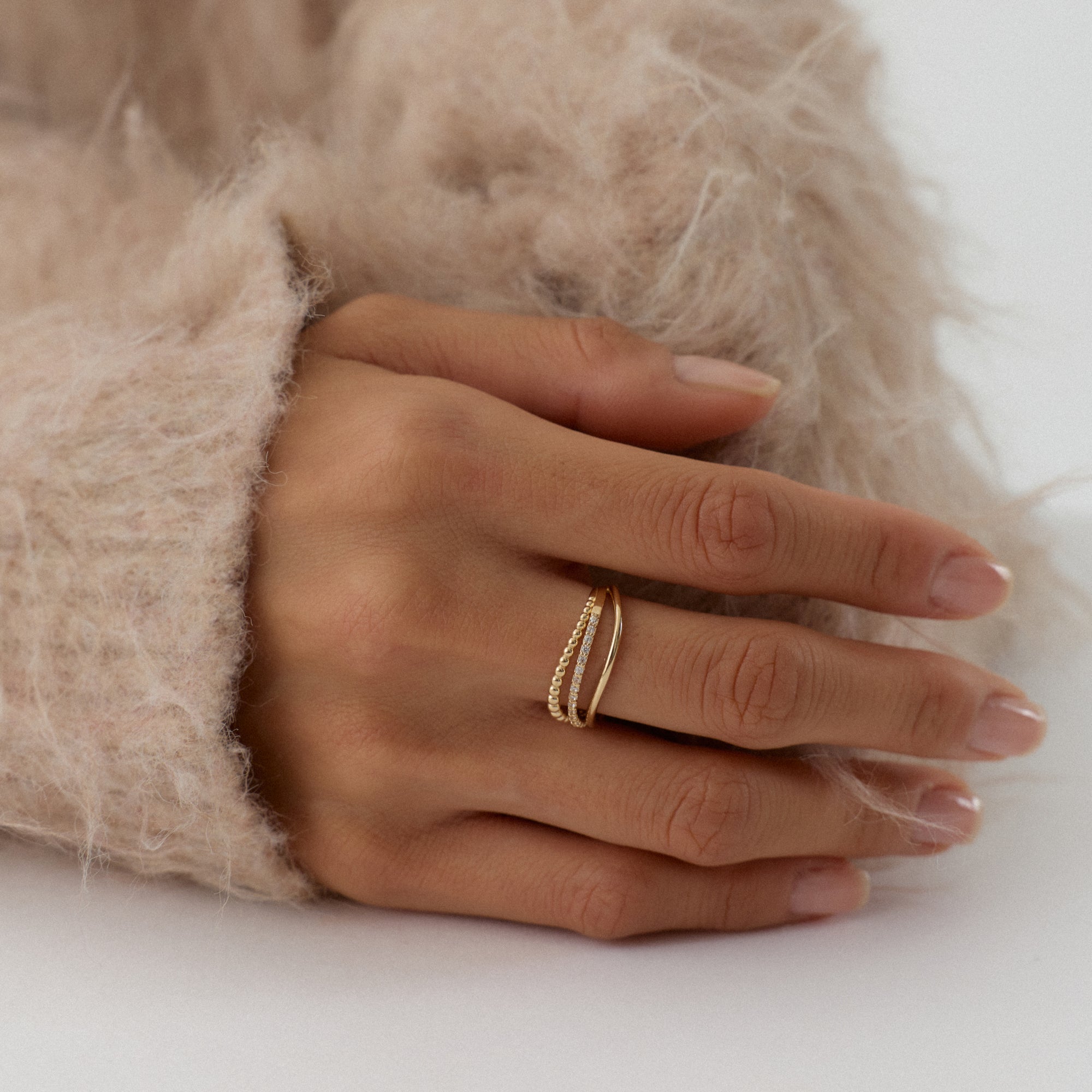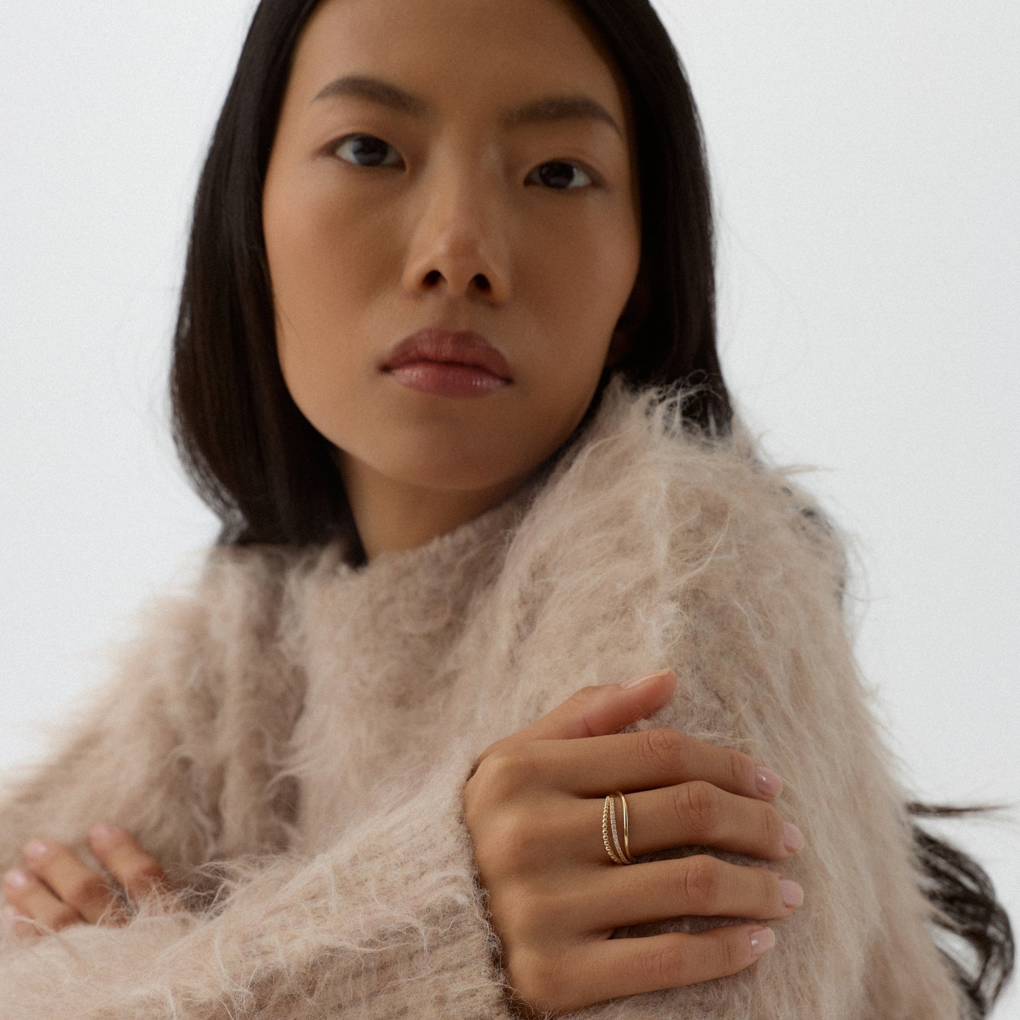 Olendra Yüzük, zarif detayların modern bir formda birleştiği etkileyici bir tasarımdır. Altının sıcak parıltısı, ışığı yumuşak bir ışıltıya dönüştürür. Her hat, sadelikle gücün kusursuz dengesini taşır. Günlük kullanımda zarif bir tamamlayıcı, özel anlarda göz alıcı bir parıltı sunar. Olyndra, modern kadının ölçülü zarafetini yansıtan zamansız bir parçadır.