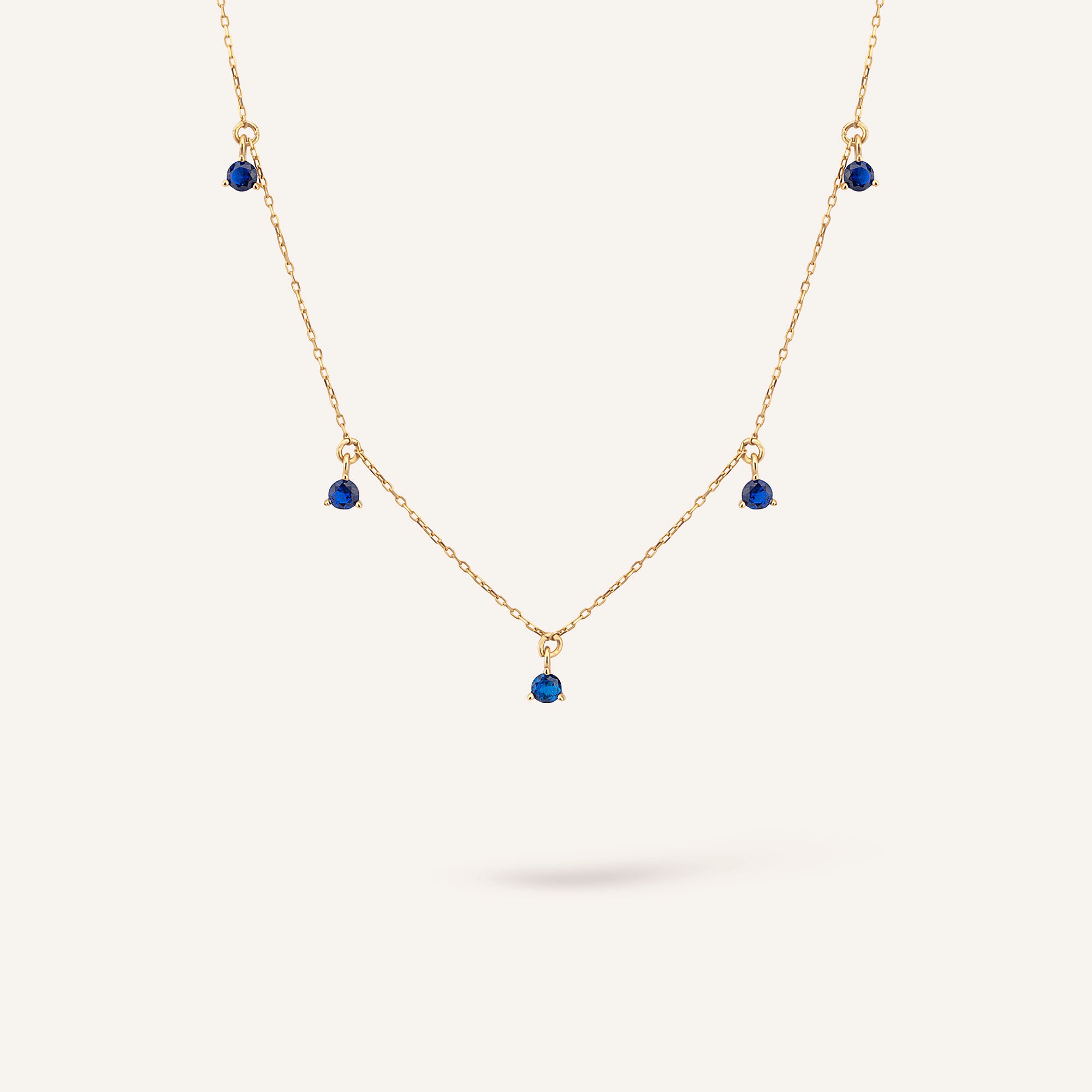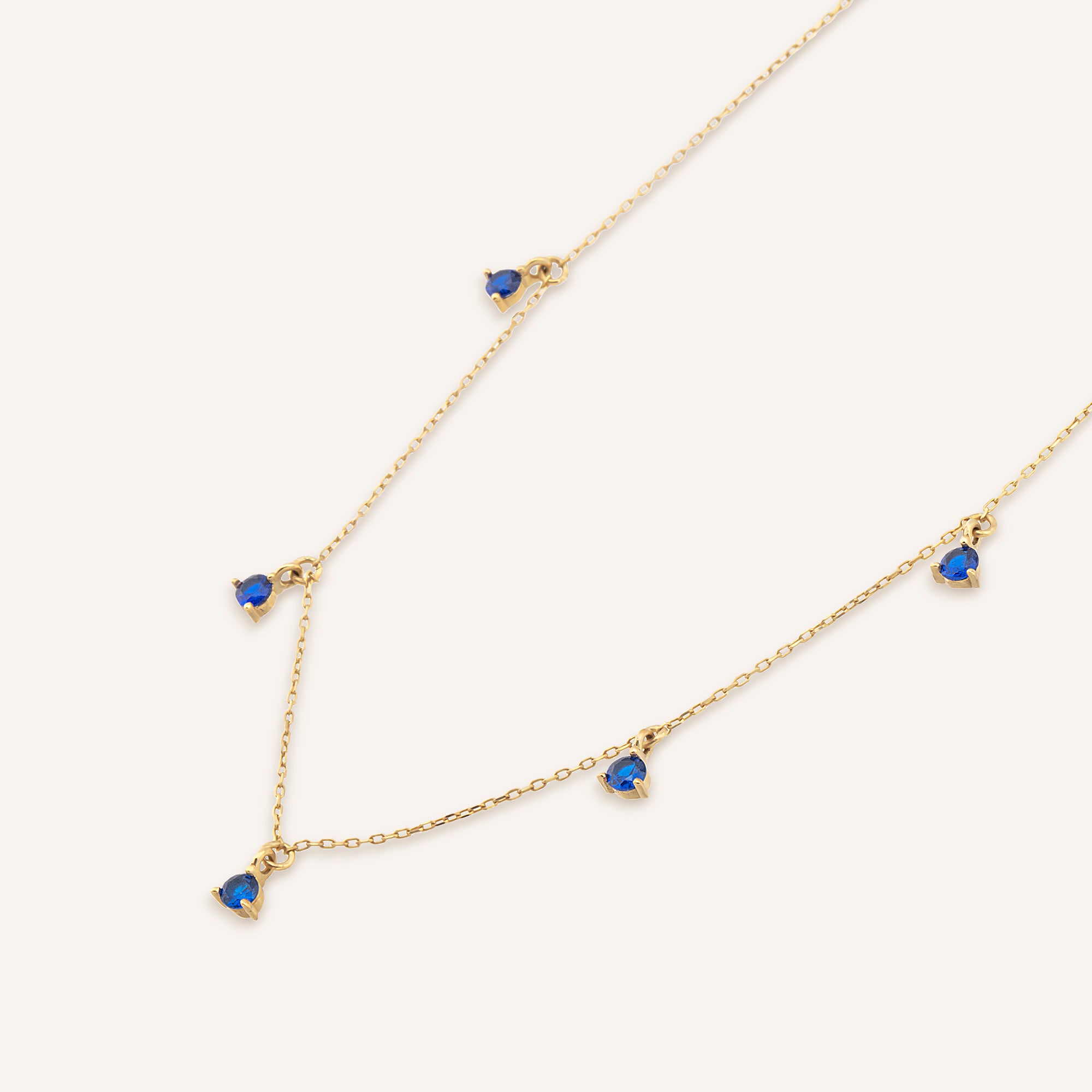 Aja Özel Tasarımı 14 Ayar Altın Mavi Taşlı Kolye