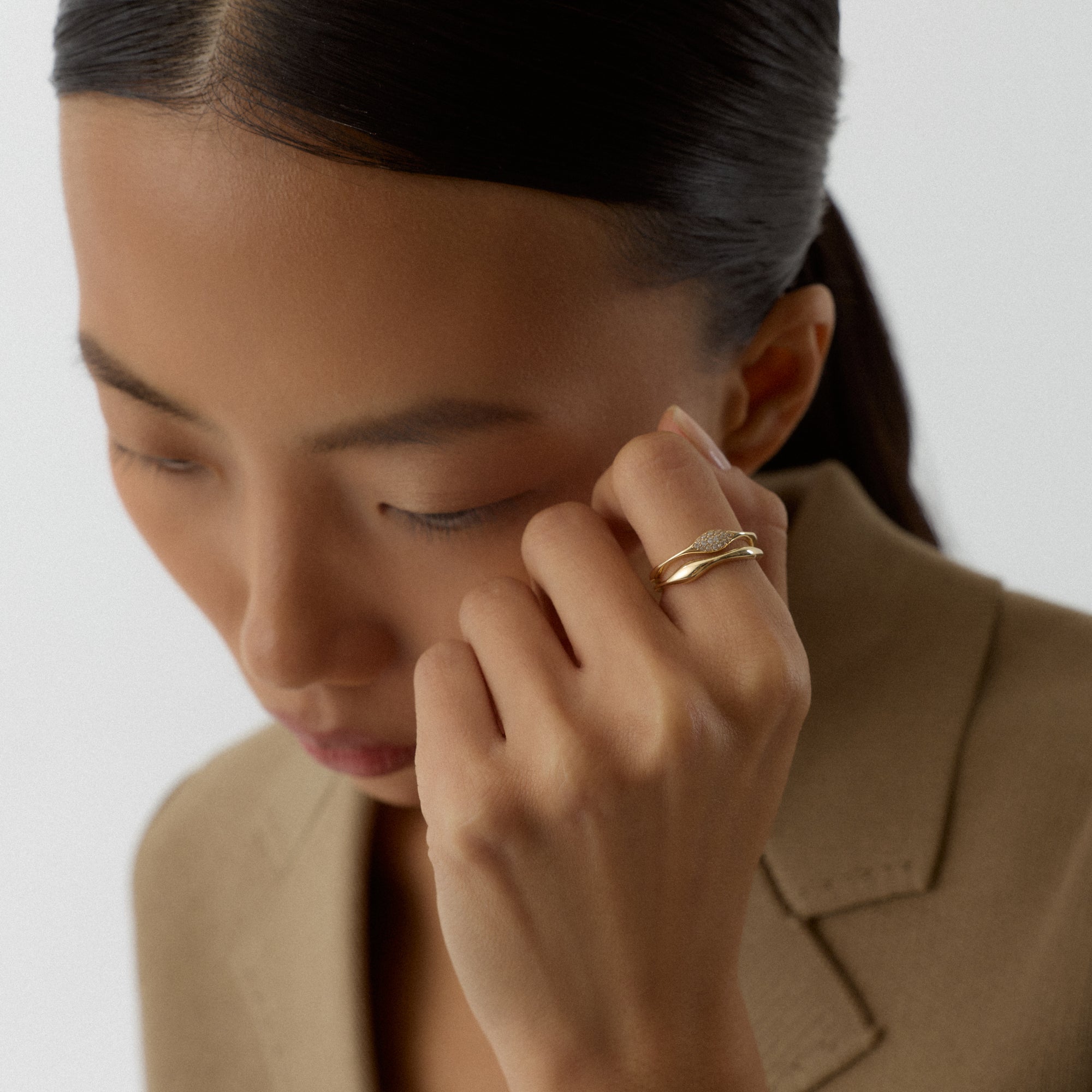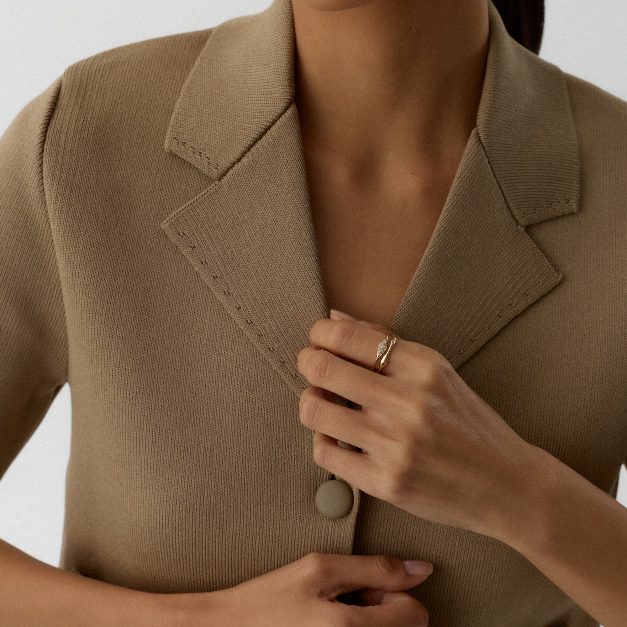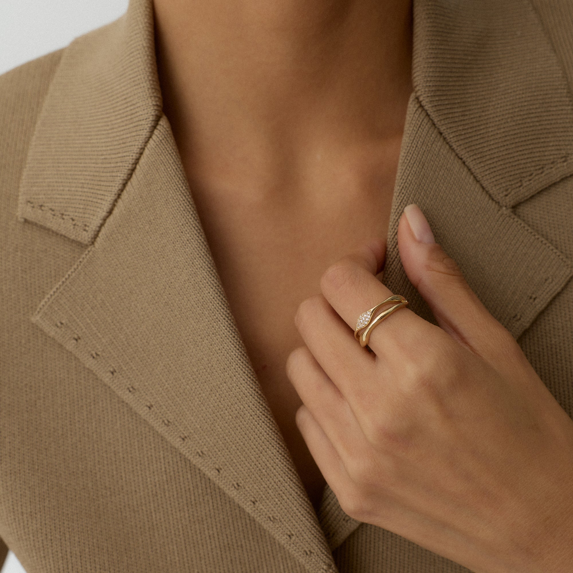 Melora Yüzük, zarafetin en yalın hâlini feminen dokunuşlarla sunar. Altının sıcak tonu, ışığı nazikçe yakalayarak her harekette yumuşak bir parlaklık oluşturur. Modern çizgiler, klasik bir inceliği taşır. Günlük şıklıkta zarif bir tamamlayıcı, özel anlarda göz alıcı bir vurgu yaratır. Melora, modern kadının sade ama güçlü ışıltısını temsil eder.