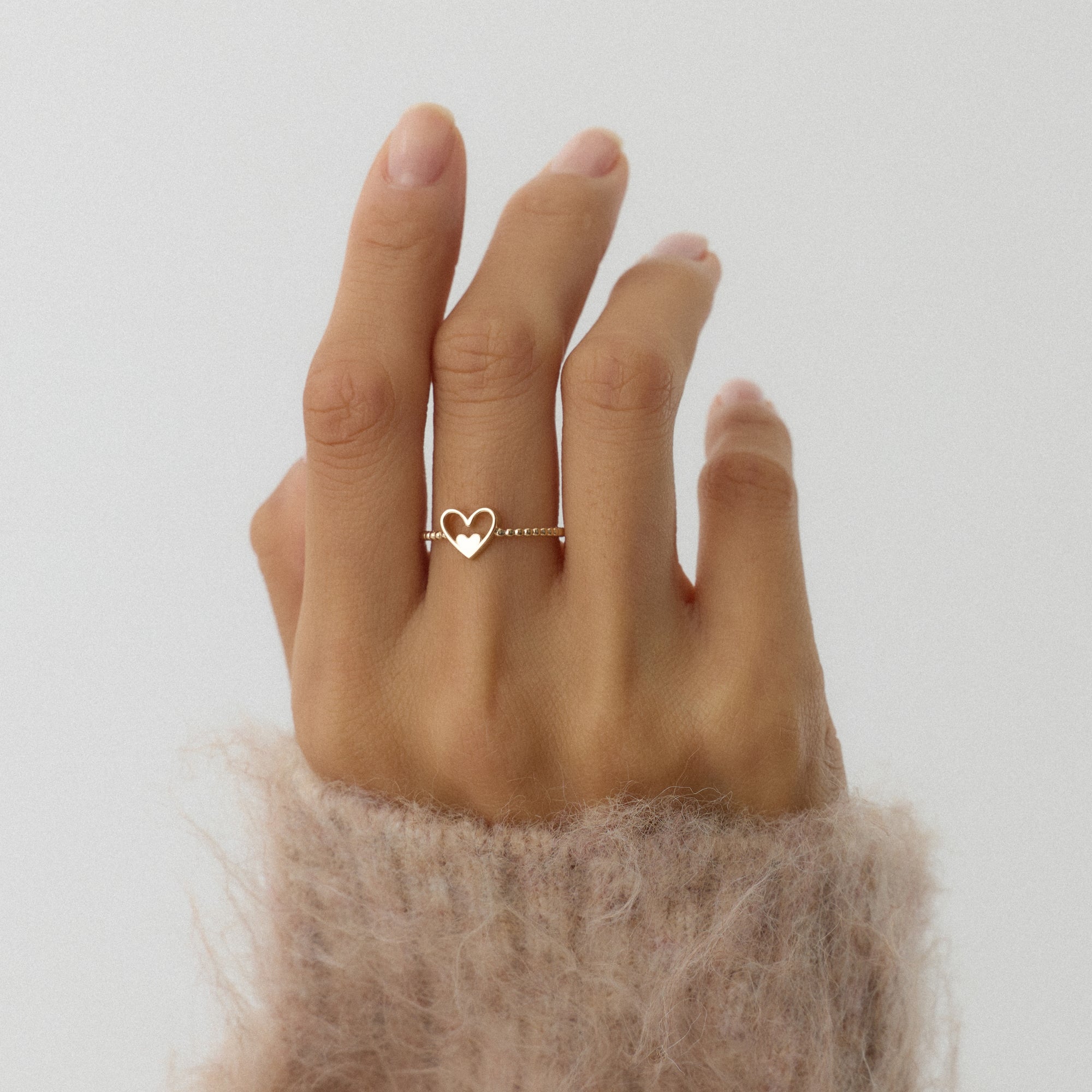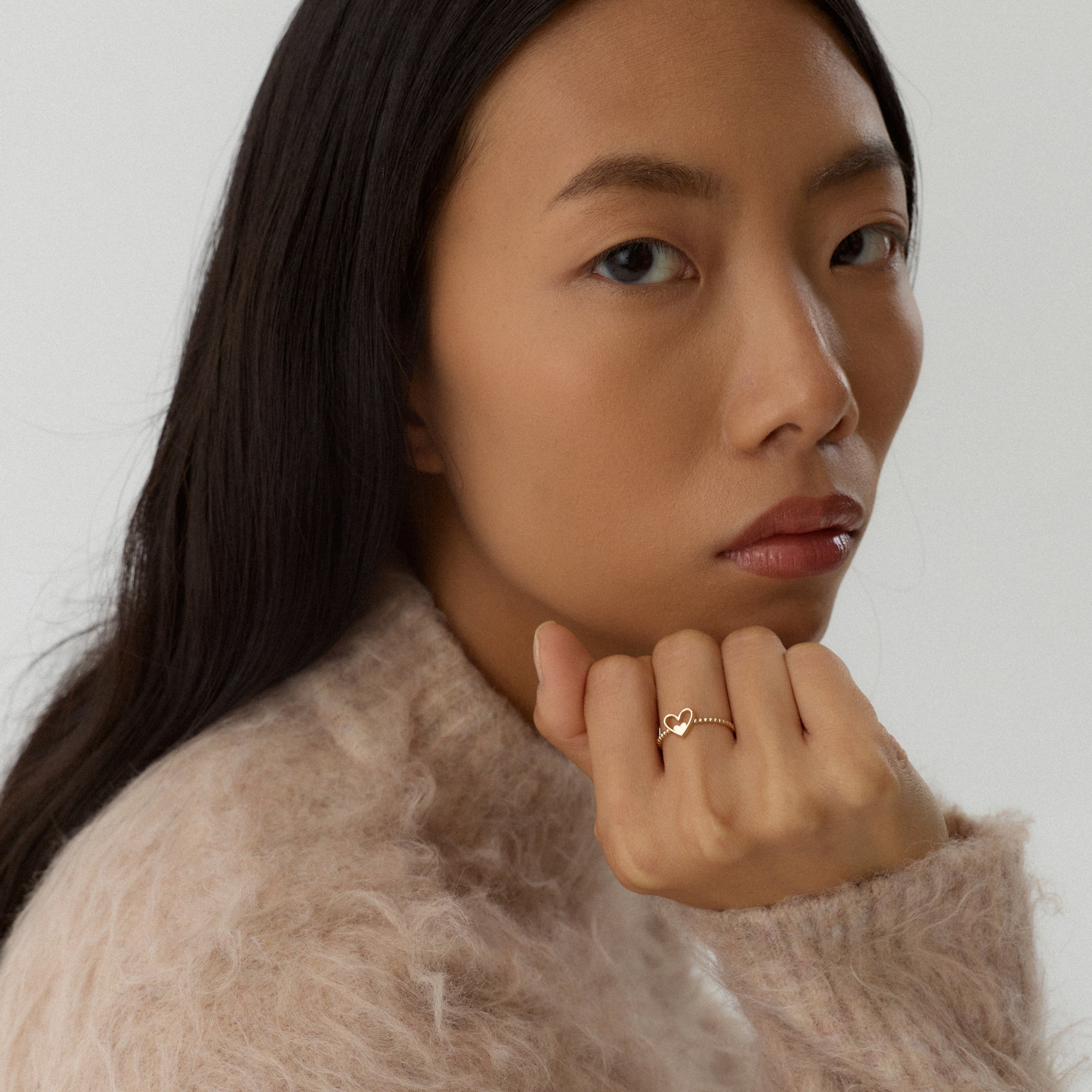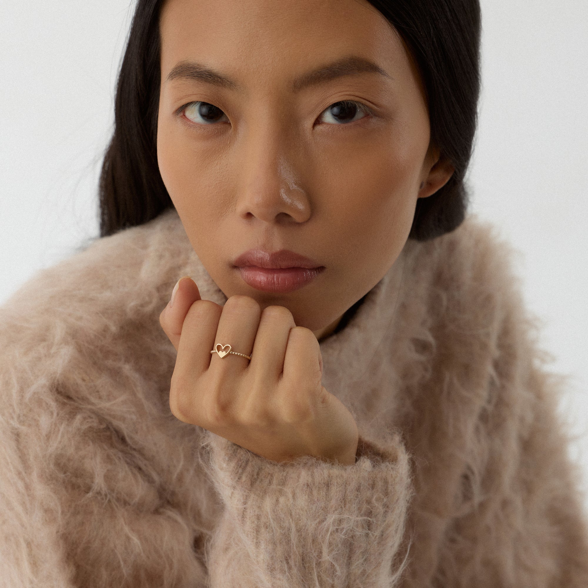 Mirethe Yüzük, zarif bir simetriyle ışığın yansımasını taşır. Altının parlak yüzeyi, sade bir formda kadınsı bir ışıltı sunar. Her detayı ölçülü bir estetik hissi verir. Günlük kullanıma uygun şıklığıyla özel anlarda da zarif bir vurgu oluşturur. Mirethe, minimalizmin içindeki zarif parıltının modern ifadesidir.