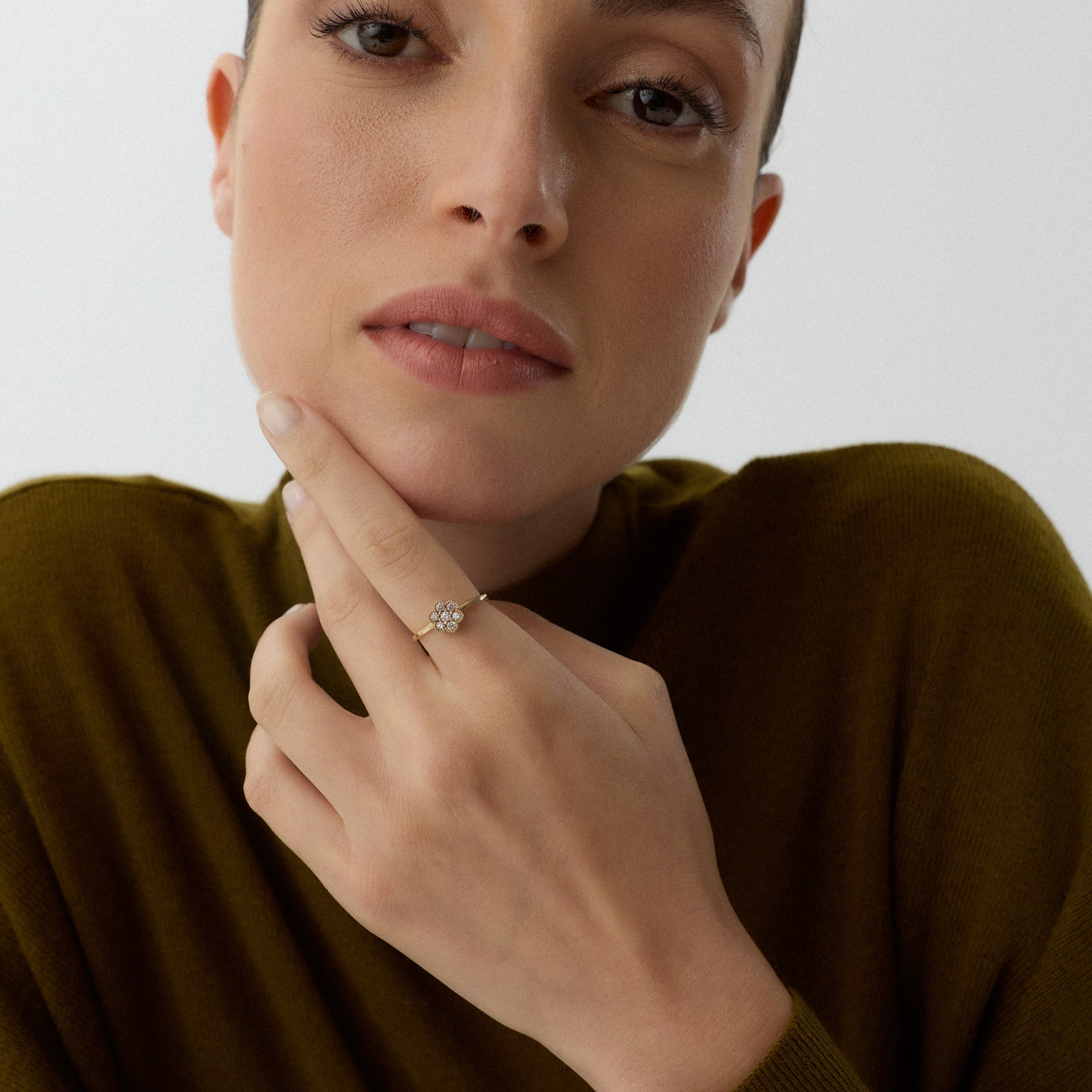 Nerisa yüzüğü, parmakta suyun hareketini hatırlatan bir zarafet yaratır. Taşın parlaklığı, altın formun yumuşak çizgileriyle birleşir. Her detayda doğallığın içinde saklı bir incelik vardır.