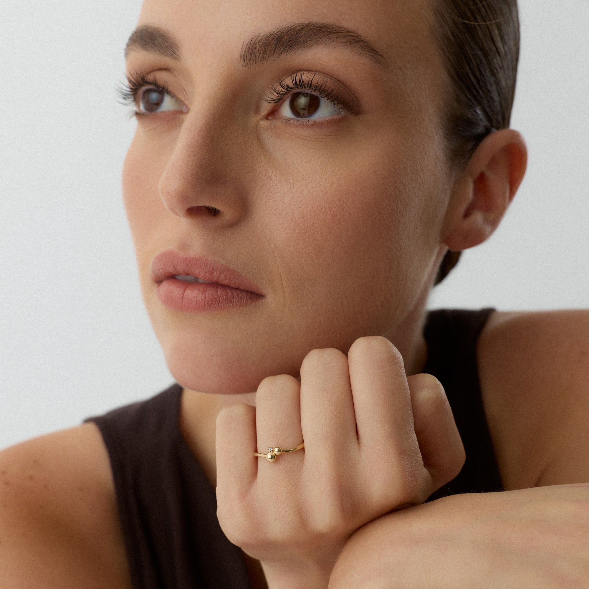 Orelis Yüzük, zarif bir sadeliği güçlü bir parıltıyla taşır. Altın yüzey, ışığı dengeli biçimde yansıtarak parmakta huzurlu bir parlaklık oluşturur. Her detayında ölçülü bir zarafet hissedilir. Orelis Yüzük, sade ama unutulmaz bir ışıltının sembolüdür.