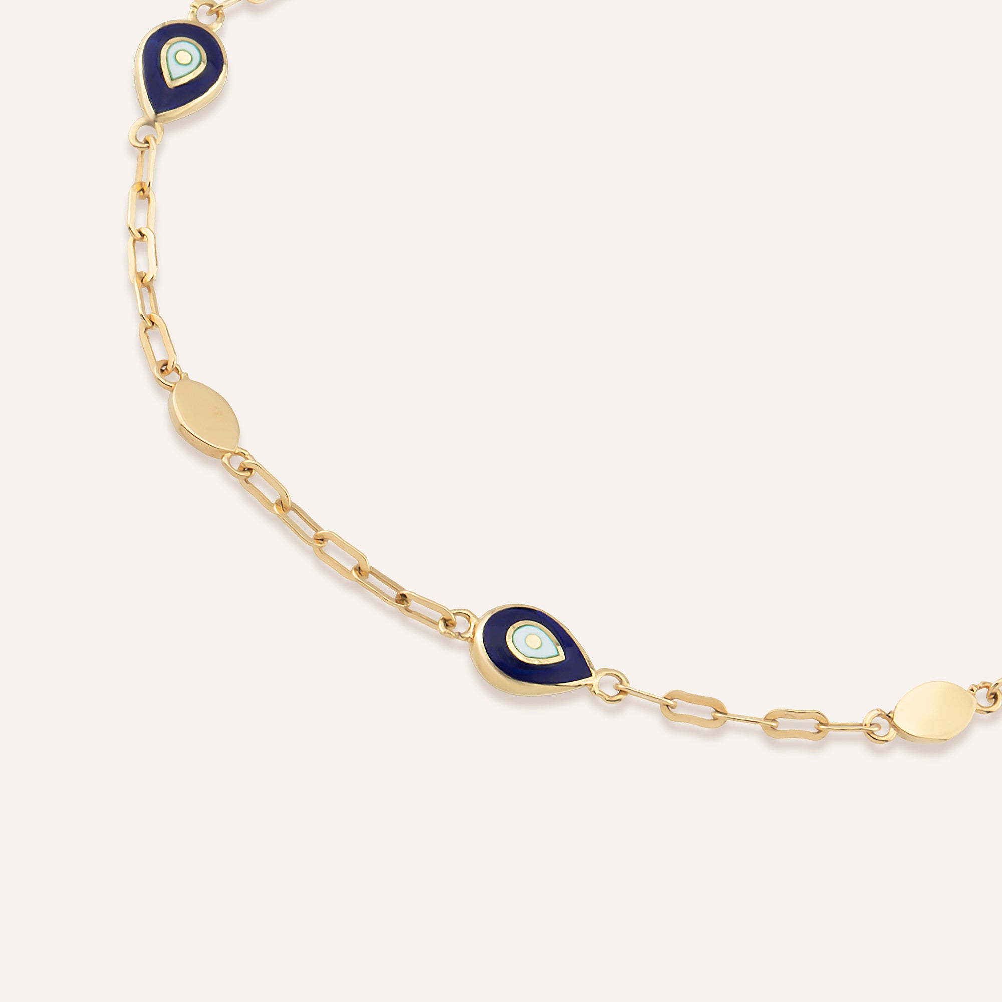 Göz figürünün kadim koruyucu anlamını modern bir çizgide yorumlayan Orvessa Bileklik, zarafeti sembolik bir güçle bir araya getiriyor. İnce formunun üzerine işlenen göz motifi; sezgiyi güçlendirdiğine, negatif enerjiyi uzaklaştırdığına inanılan derin bir sembol olarak tasarıma mistik bir katman ekliyor. 14 ayar altının sıcak ışıltısı, bilek üzerinde hem hafif hem de dikkat çekici bir parlaklık yaratırken sıradışı detaylar tasarımı güçlü bir karakterle tamamlıyor.