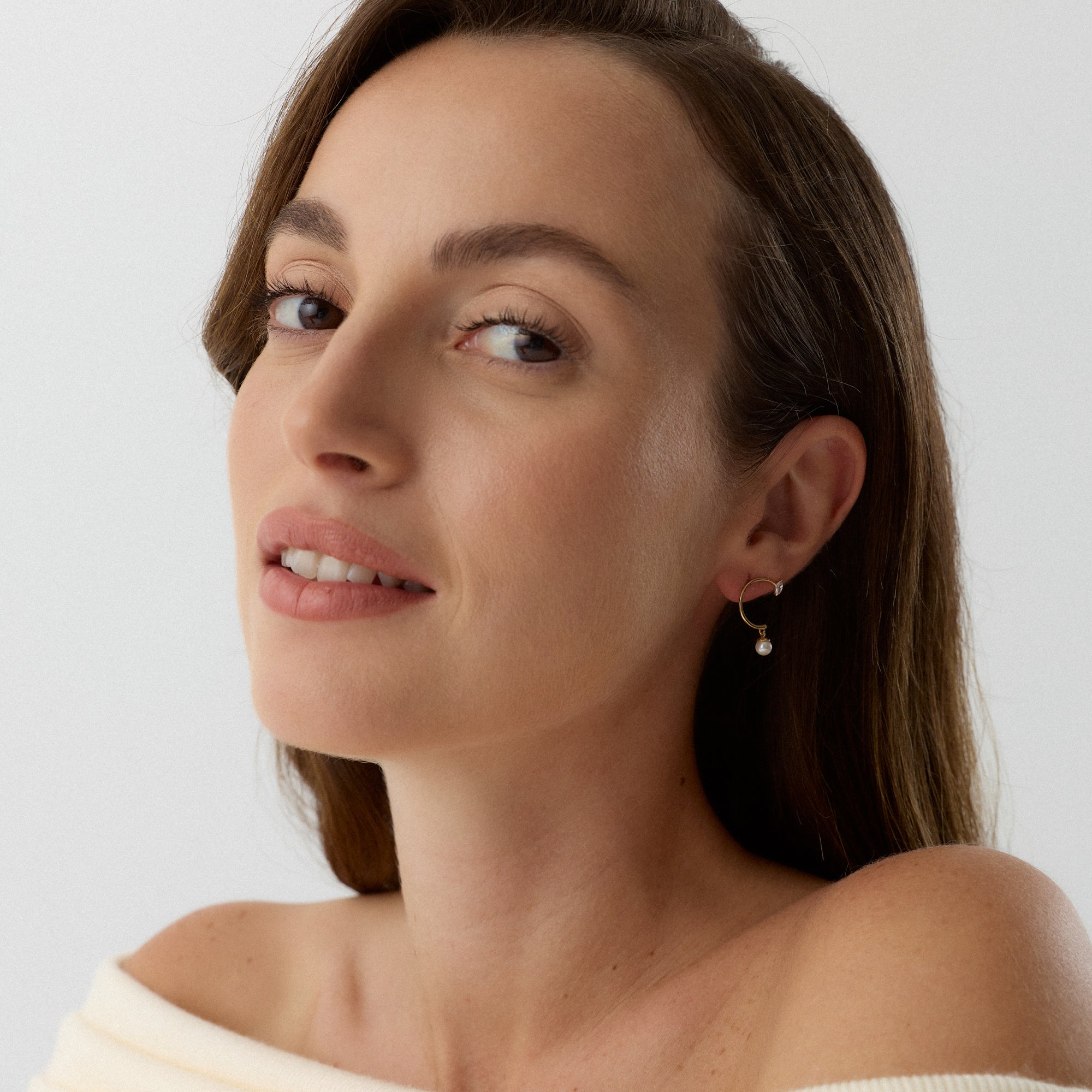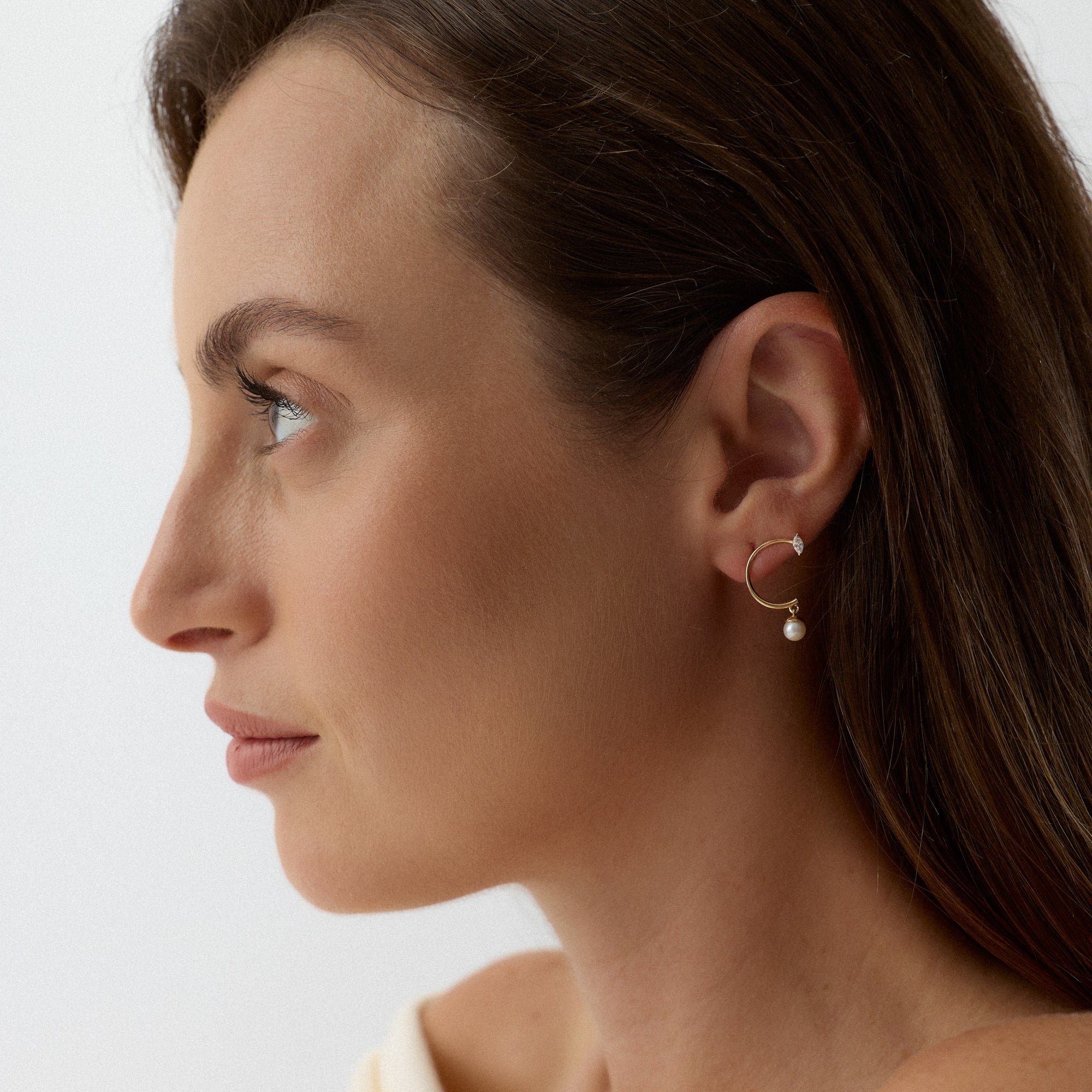 Puria Küpe, incinin huzurlu parlaklığını zarif bir dengeyle taşır. Altının sıcak tonu, incinin beyaz zarafetiyle birleşir. Feminen bir duruşu sade bir çizgiyle anlatır. Gün boyu konforla taşınabilir; her anında şıklık hissi yaratır.