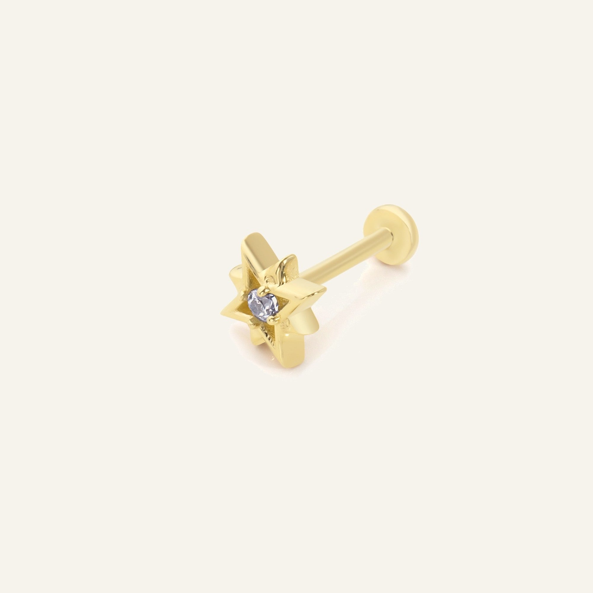 AJA Rosario Yıldız Parıltı Figürlü Ortası Taşlı Kulak Piercingi – 14 Ayar Altın