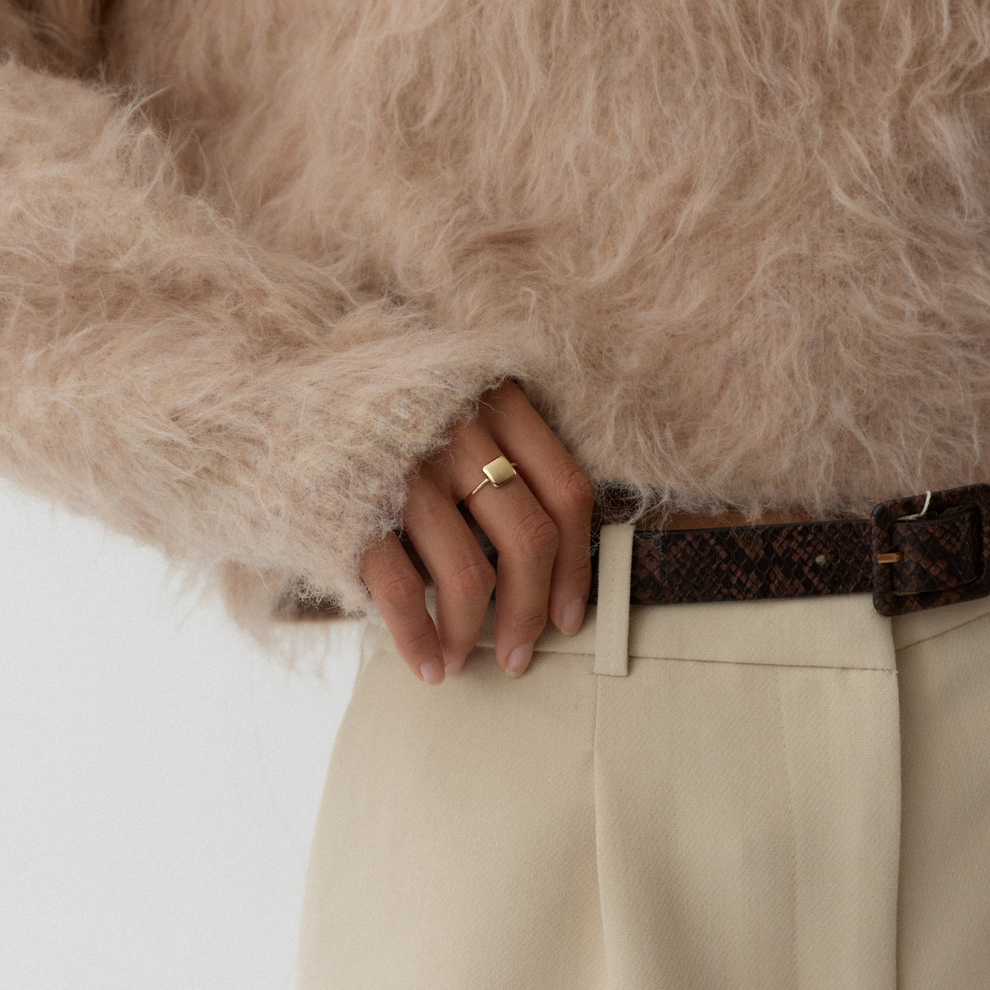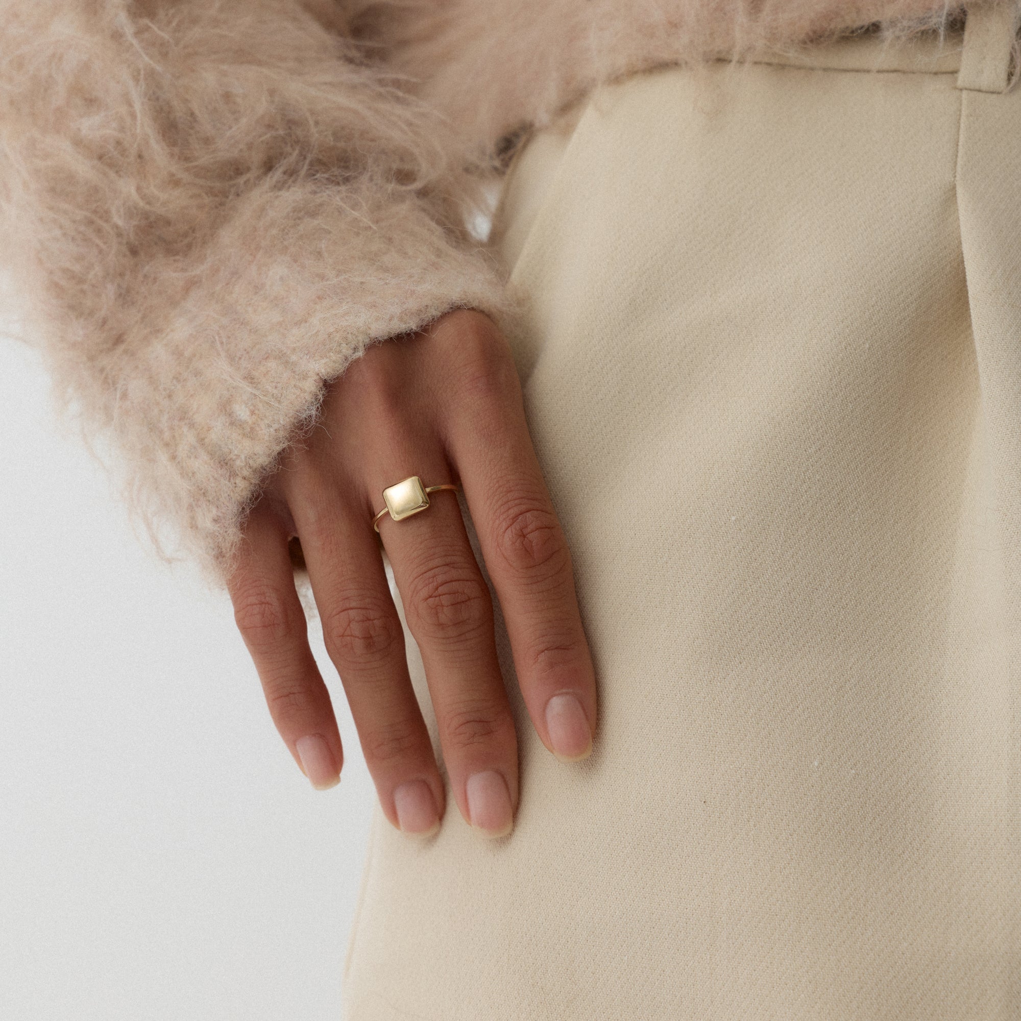 Selvane Yüzük, zarif bir dengeyle ışığın yumuşak tonlarını taşır. Altının parlak yüzeyi, sade bir formda kadınsı bir ışıltı oluşturur. Feminen ama minimal bir estetik taşır. Selvane, modern kadının zamansız şıklığını temsil eder. Doğal güzelliği ölçülü bir zarafetle yansıtan, dengeli bir parıltıya sahiptir.
