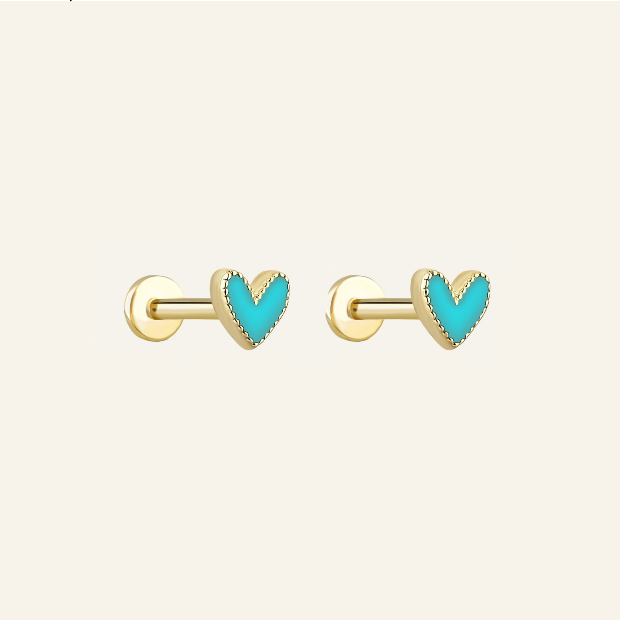 Small Echo Blue Kalp Figürlü Çift Kulak Altın Piercing