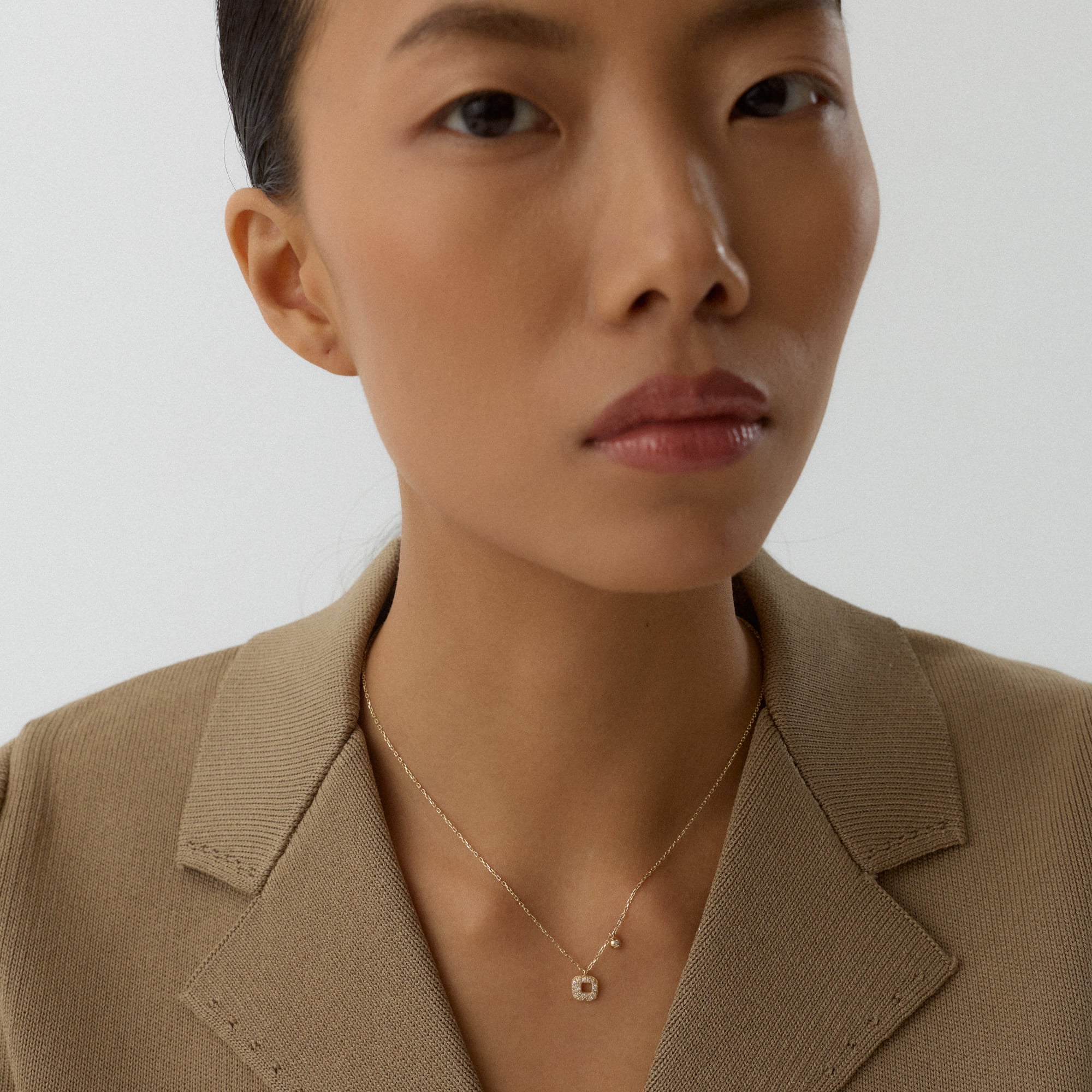 Solea kolyesi, güneşin sıcak titreşimini zarif bir biçimde boyuna taşır. Zincir boyunca süzülen altın halkalar, taşların parıltısını zarif bir akışla yansıtır. Güneş ışığının altındaki ton geçişleri gibi, her hareketle farklı bir parlaklık ortaya çıkar. Bu kolye, zarafeti sıcak bir enerjiyle birleştirir ve her stile zamansız bir dokunuş ekler.
