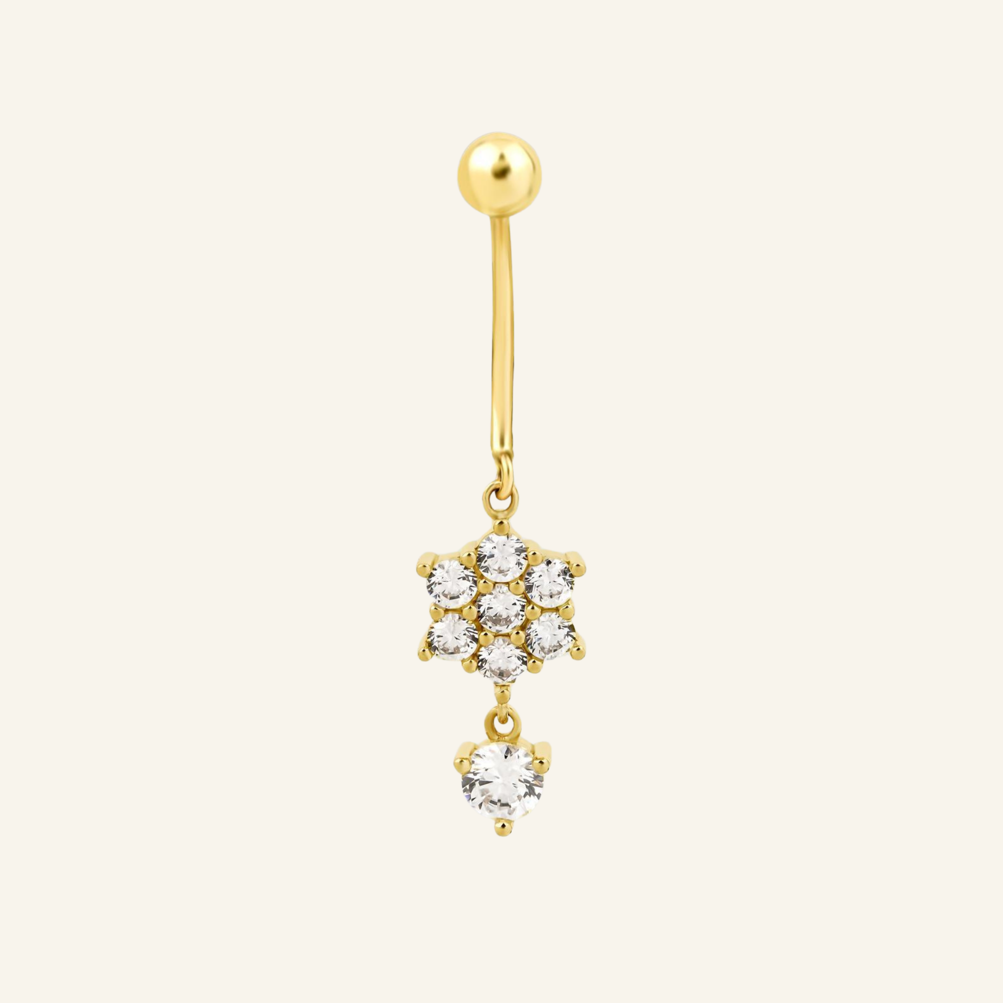 Solo Shine Tek Taş Motifli Yuvarlak Kesim Taşlı Sallantılı Altın Göbek Piercing