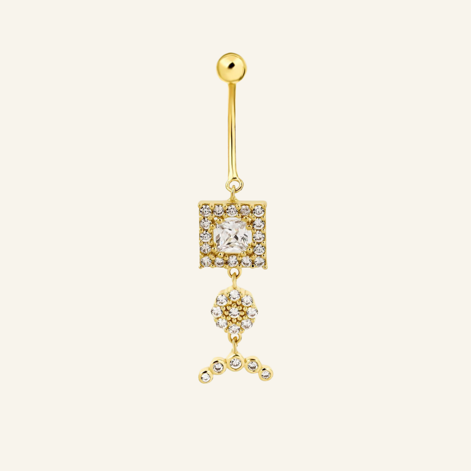 Square Glow Kemer Motifli Prenses Kesim Taşlı Sallantılı Altın Göbek Piercing