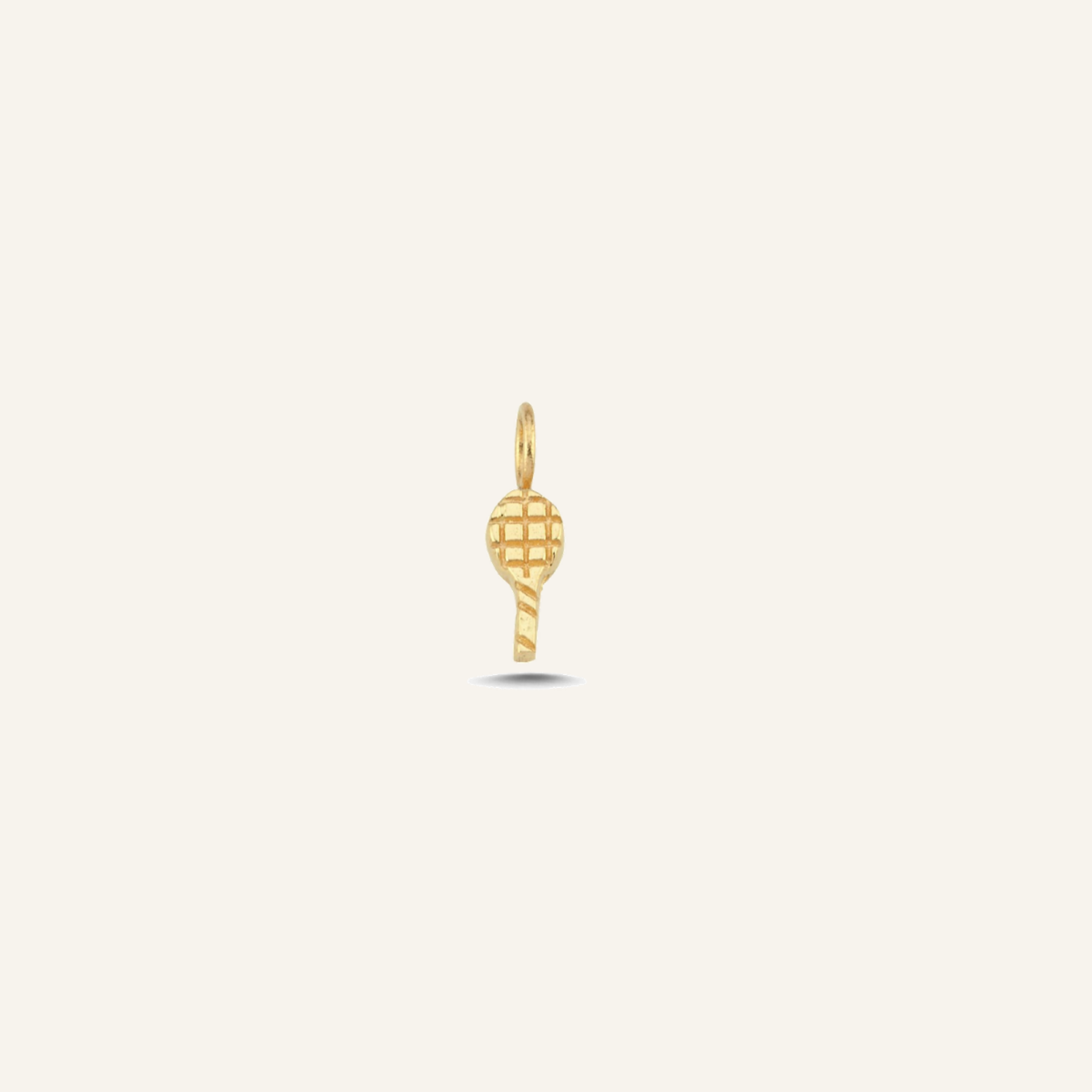 Raket figürüyle tasarlanan Tennis Racket Altın Charm, minimal bir formda güçlü bir hobi ve yaşam ritmi vurgusu taşır.