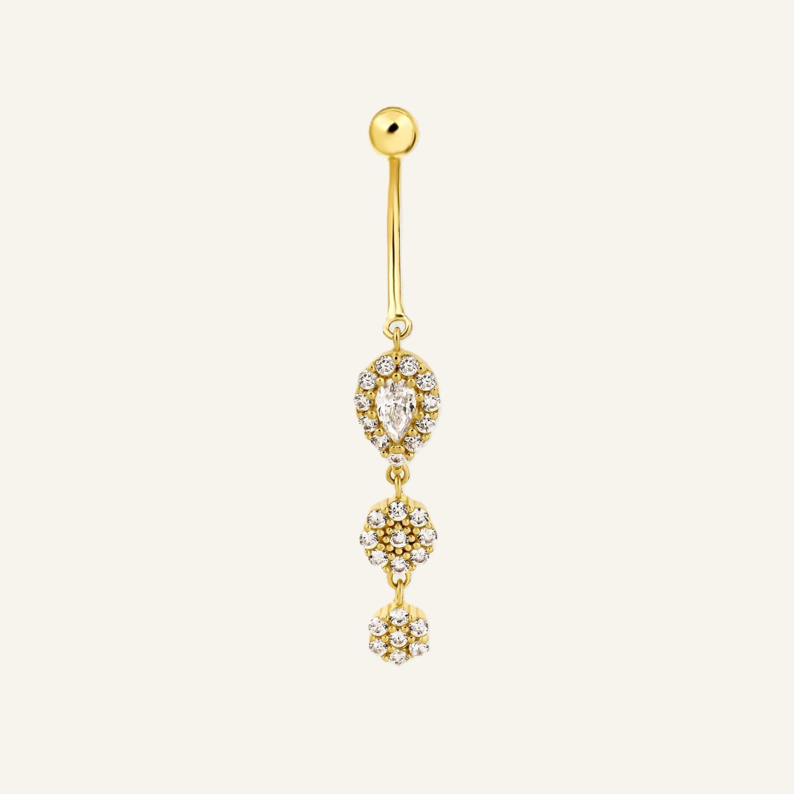 Twin Teardrop Çift Damla Motifli Oval Kesim Taşlı Sallantılı Altın Göbek Piercing
