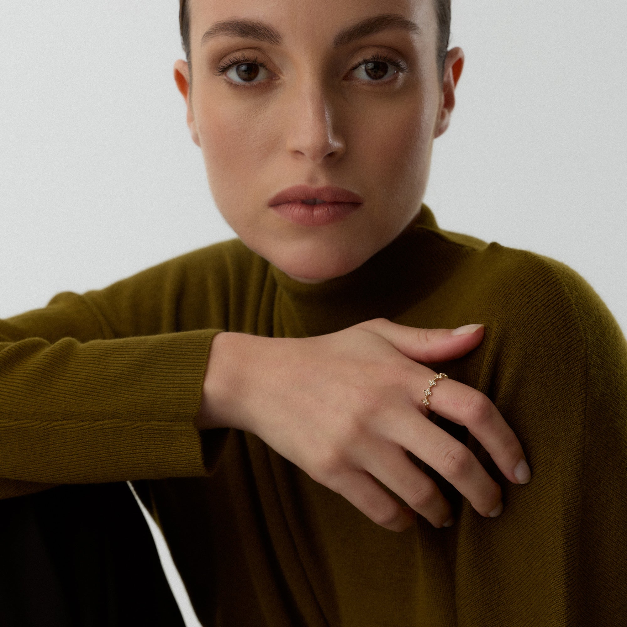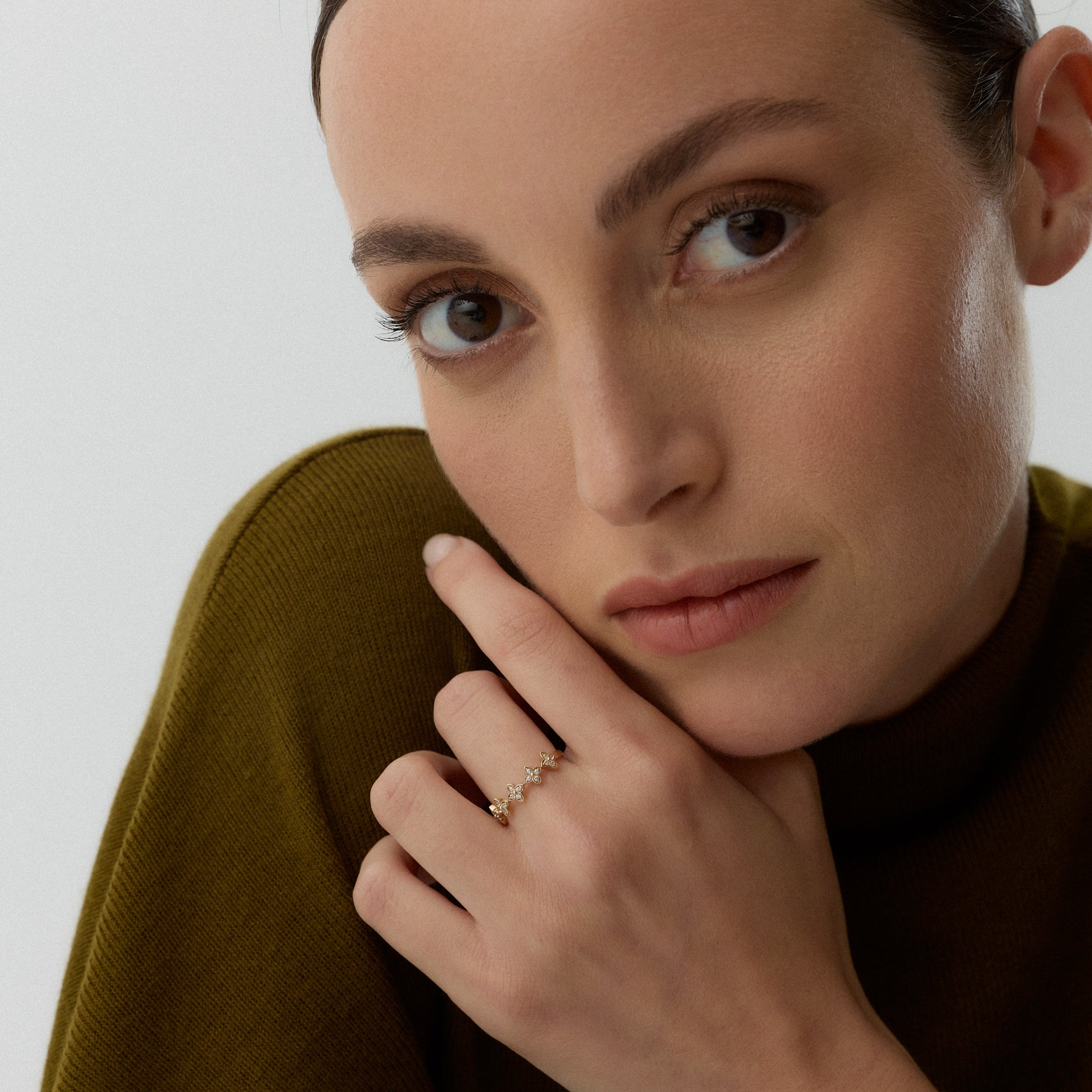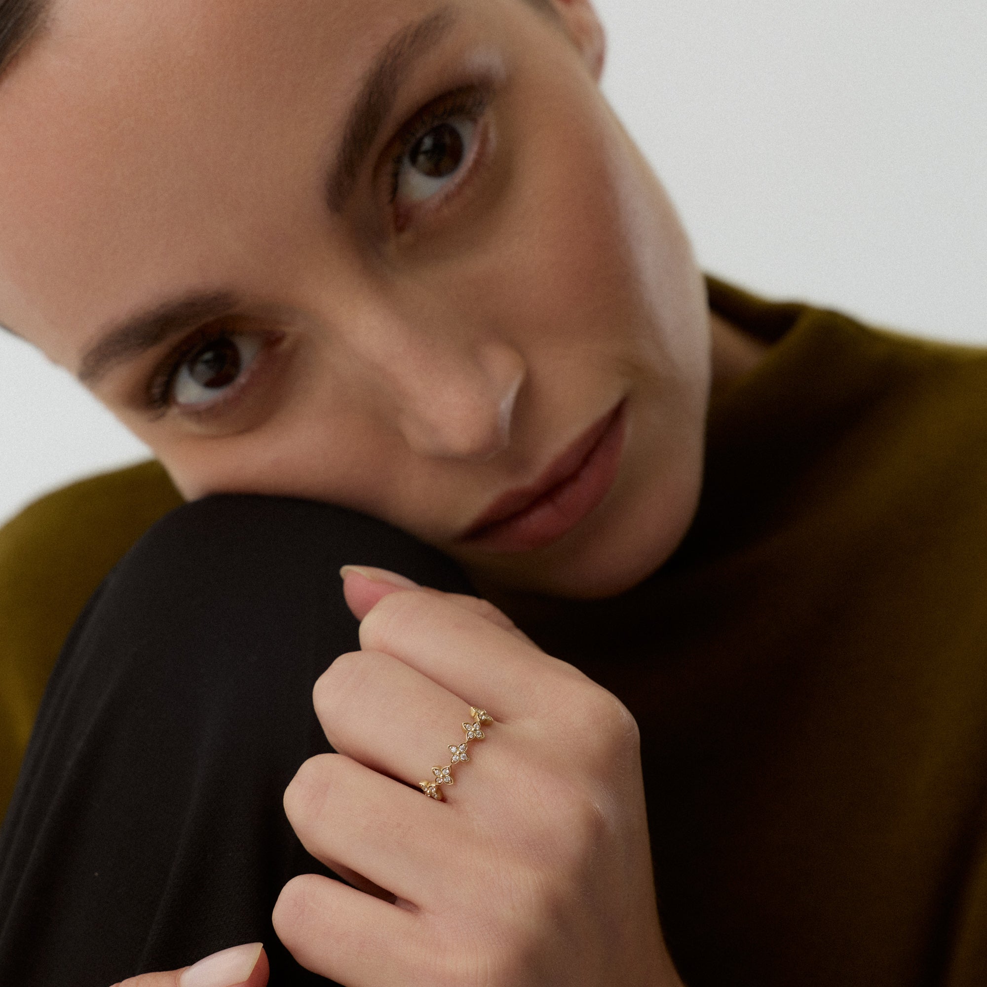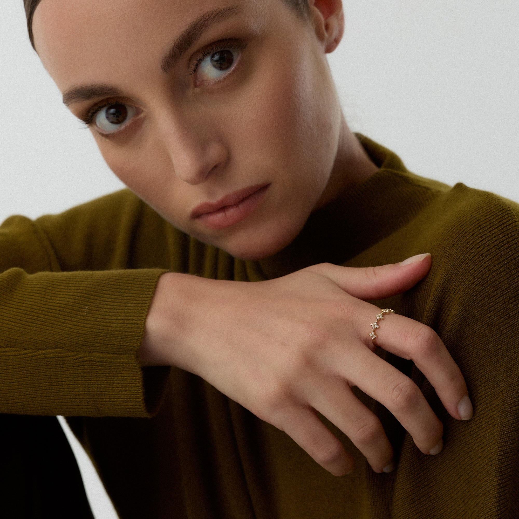 Vernox Yüzük, feminen zarafetin sade bir yorumudur. İnce formu, altının doğal ışıltısıyla birleşerek parmakta dengeli bir parlaklık oluşturur. Her detayında incelikli bir işçiliğin izleri bulunur. Valynne Yüzük, zarif bir karakterin sessiz gücünü taşır.