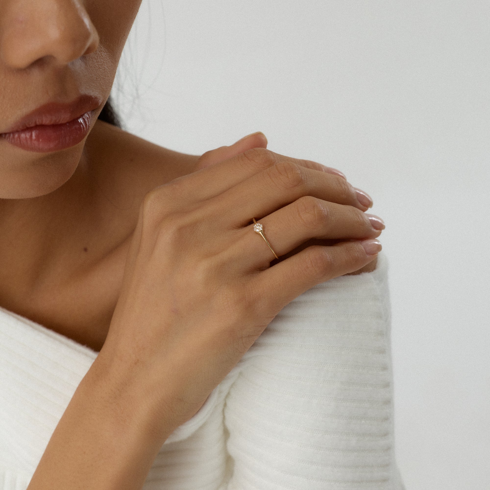 Velina Yüzük, altının yumuşak ışıltısını zarif bir formda taşır. Minimal çizgileri, sade bir zarafetin çağdaş yorumunu sunar. Feminen detaylar, abartısız bir şıklıkla birleşir. Günün her anında kullanılabilecek kadar sade ama dikkat çekici bir duruşa sahiptir. Velina, zamansız bir şıklığın modern temsilcisidir.