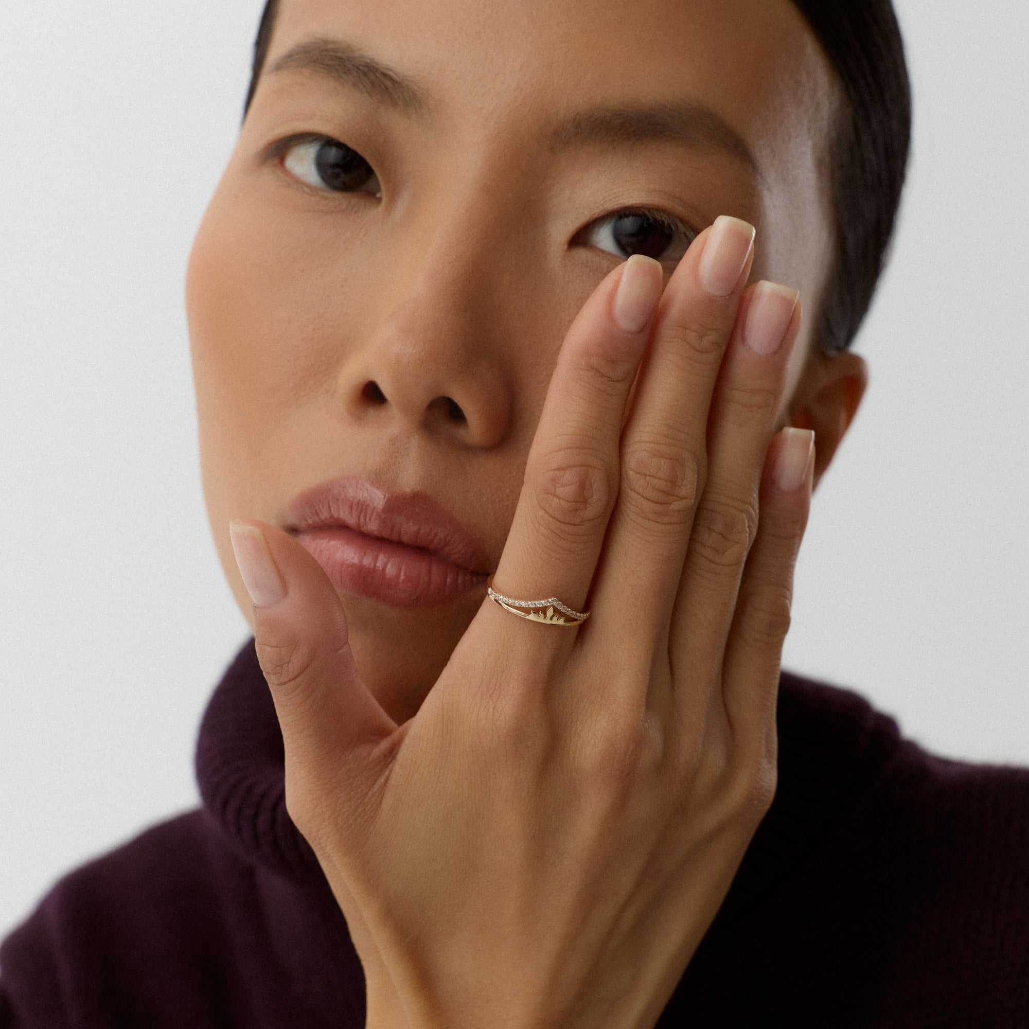 Velorae Yüzük, ışığın zarif bir çizgide hayat bulduğu bir tasarımdır. Altının sıcak rengi, sade formla birleşerek dengeli bir parlaklık oluşturur. Feminen zarafet, modern sadelikle bütünleşir. Velorae, günün her anında kullanılabilecek kadar sade ama dikkat çekici bir tasarımdır. Zamansız bir güzelliğin çağdaş ifadesidir.