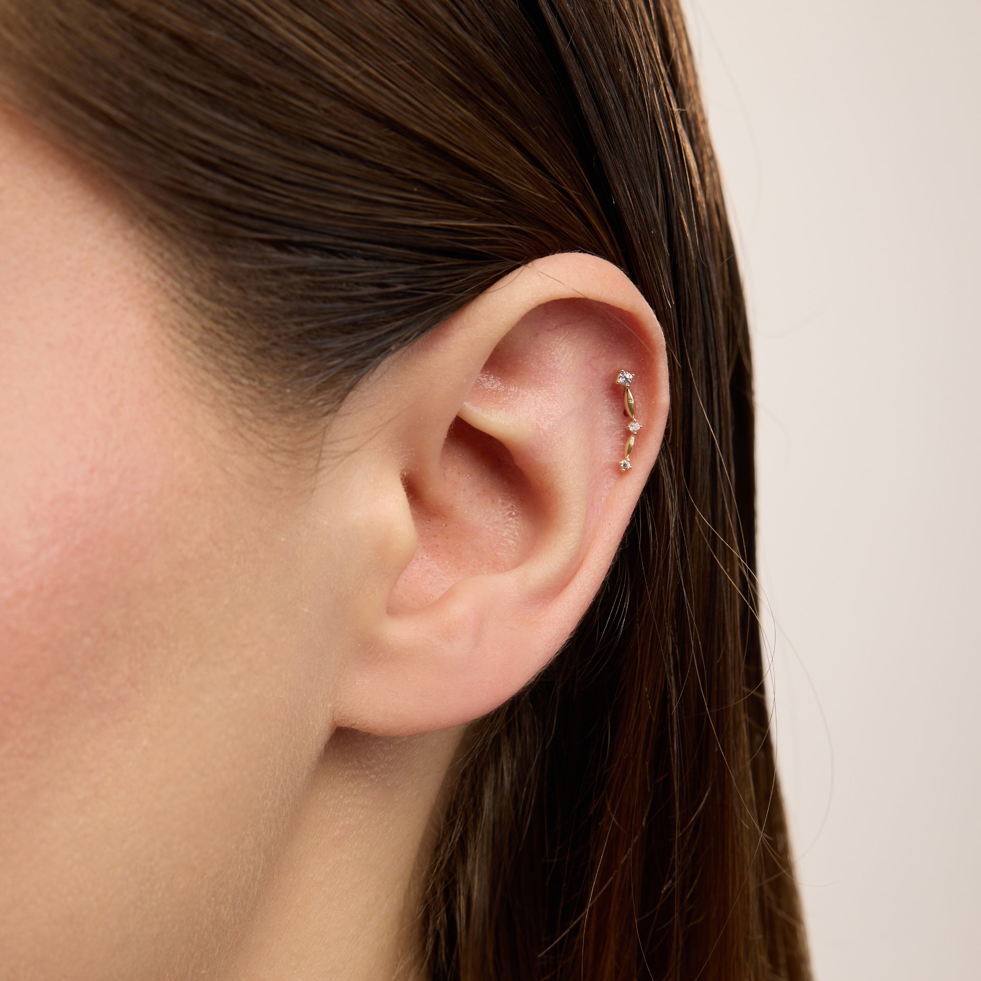 AJA Velvet 3 Taşlı Kulak Piercingi – 14 Ayar Altın