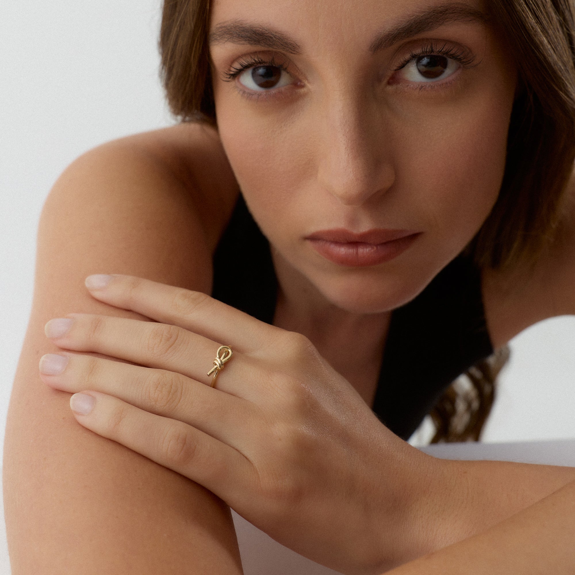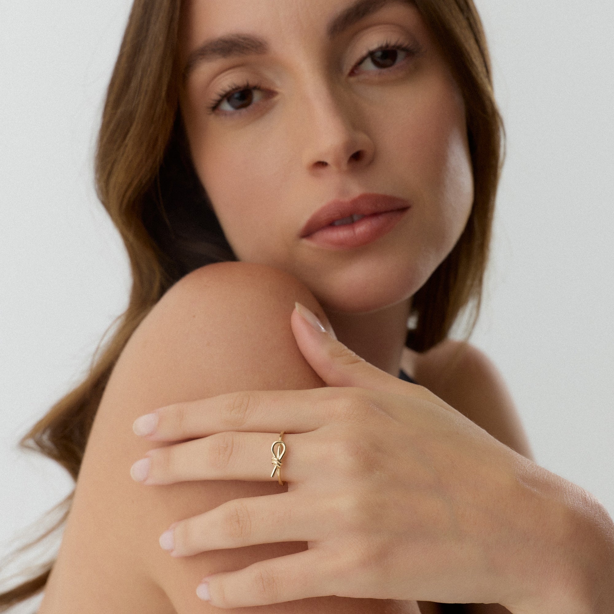 Vertia yüzüğü, parmakta dikey zarafetin sembolüdür. Işığın yukarı yönlü akışı, gücü ve sadeliği anlatır. Altın çerçeve, bu enerjiyi zarifçe taşır.